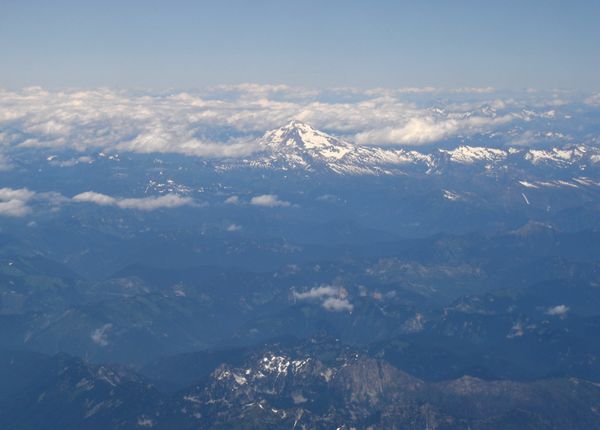 Mount Rainier and Mt Hood (I think).