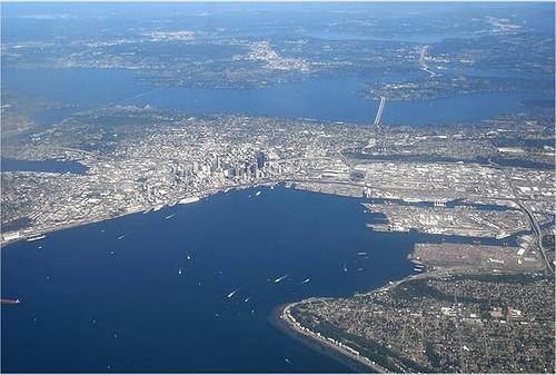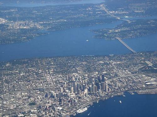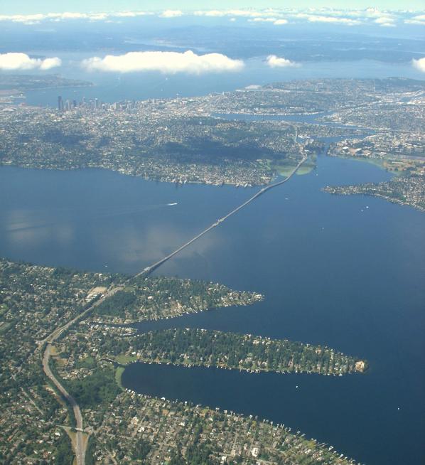 The city in the bottom; Mercer Island above right; with the famous floating bridge.