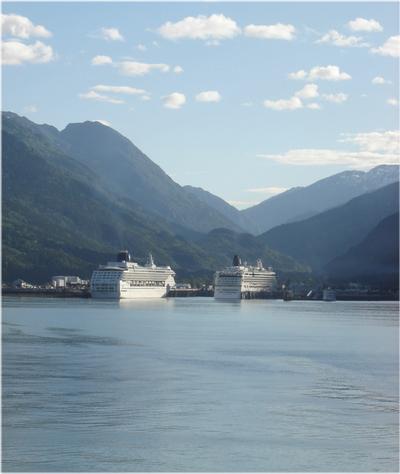 Looking toward/above-left of Skagway from the pier.