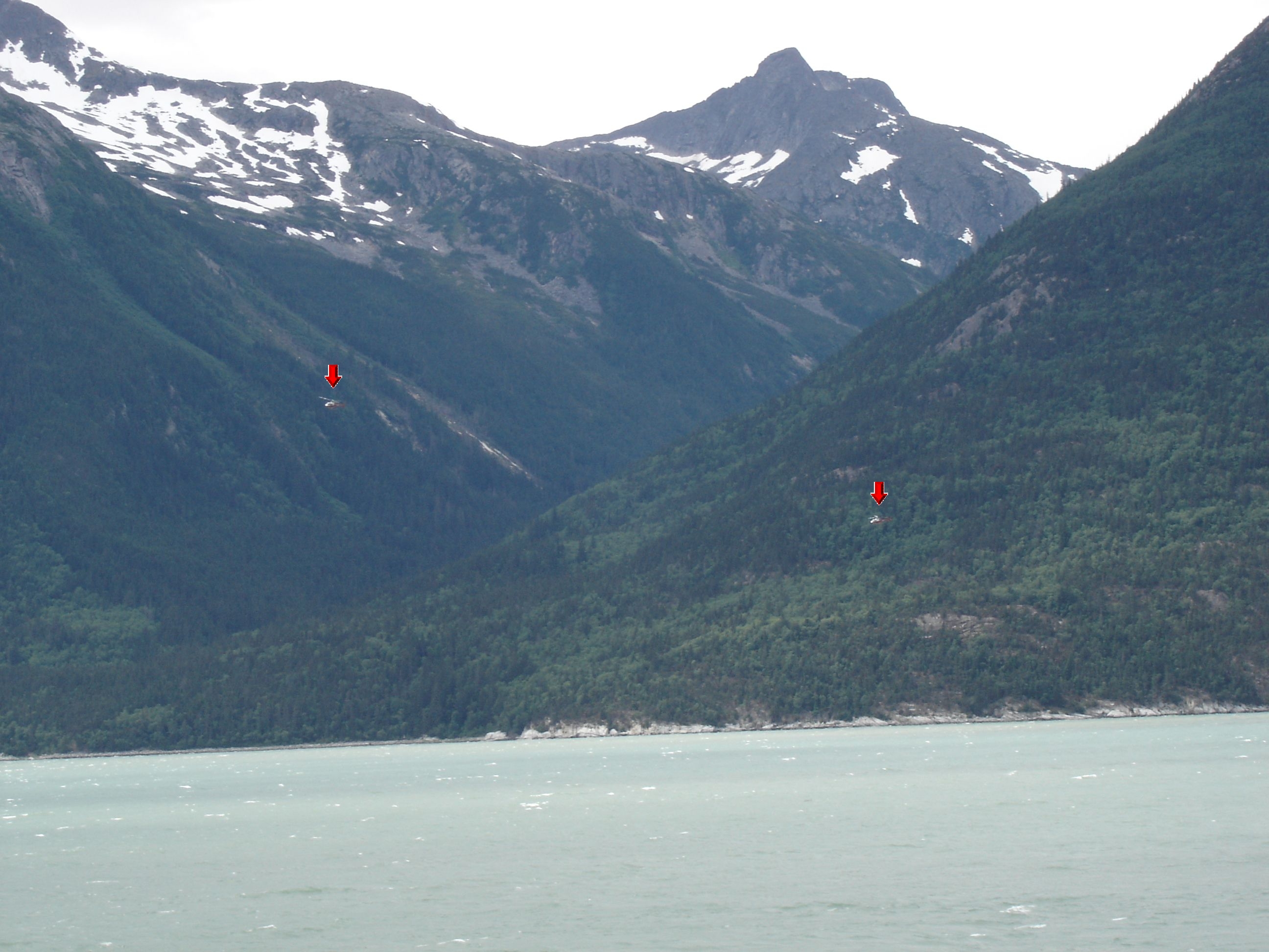 | To get a sense of how large, look closely at this enlargement (click below or right to see). The two helicopters (marked with arrows) will give you a sense of the scale! |