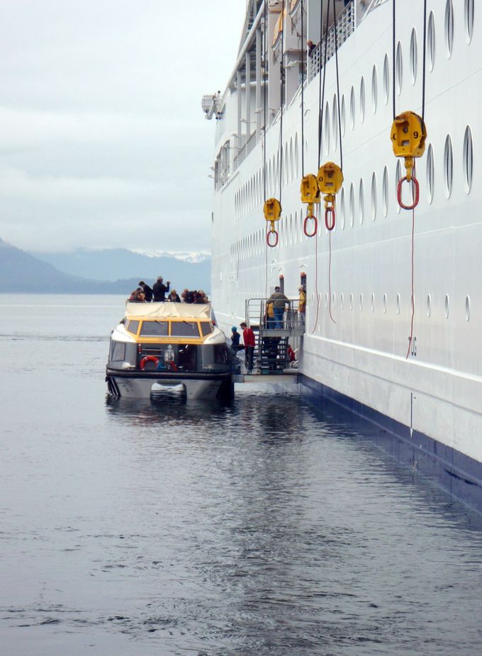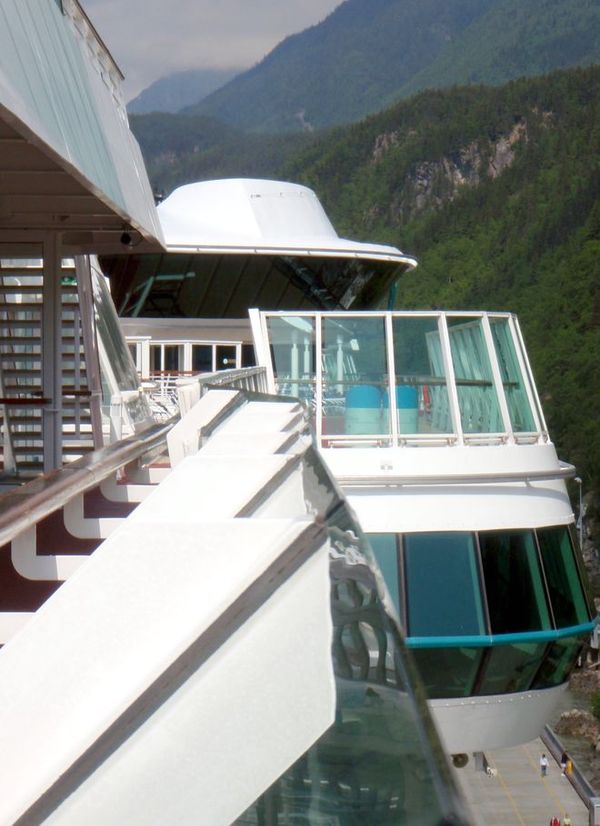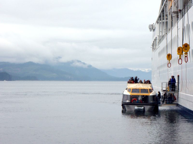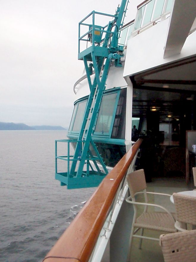 Odd noises the first morning sent me to to balcony. The launches used to ferry passengers ashore and back at Icy Strait Point (which we had reached), were being launched directly below our cabin!