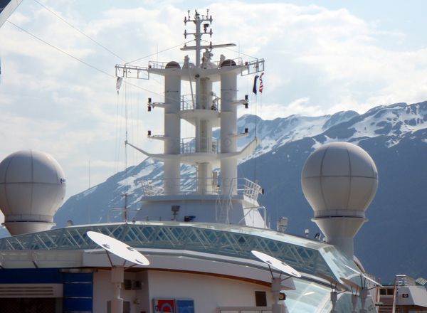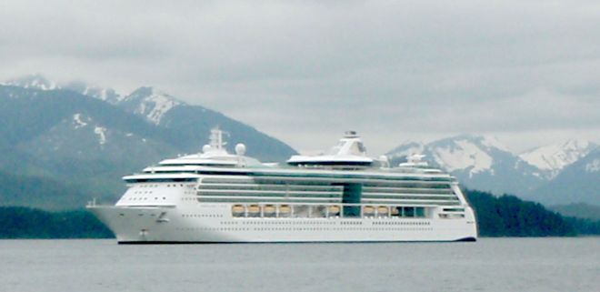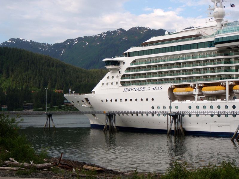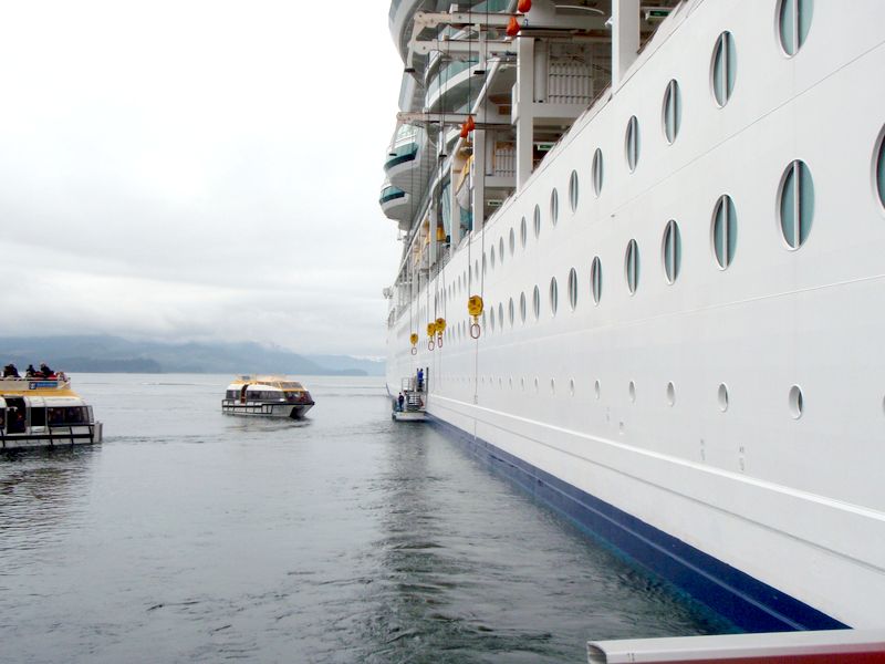 Station-keeping at Icy Strait Point (Mostly, nowadays, the ships don't drop anchor, they use