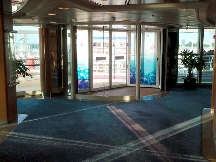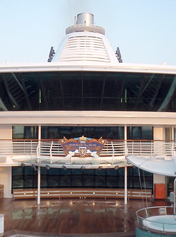 The dark glass wall is the Vortex bar, sitting one deck above