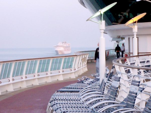 The Princess ship was ahead of us the afternoon before we pulled into Vancouver. In the night she pulled over and waited as we passed. It was about 3:30 a.m. I assume we had a different / earlier docking time that she did.