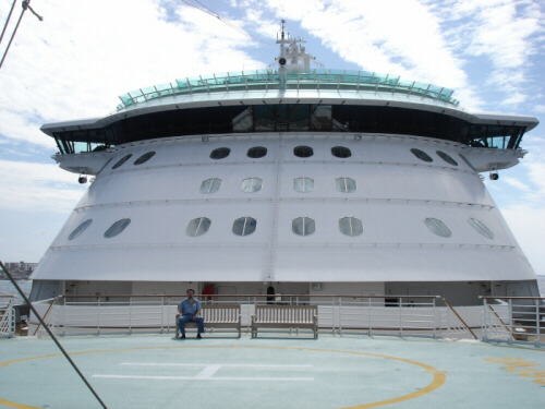 Michael Ray on the helo deck. Above him is the bridge of the ship.