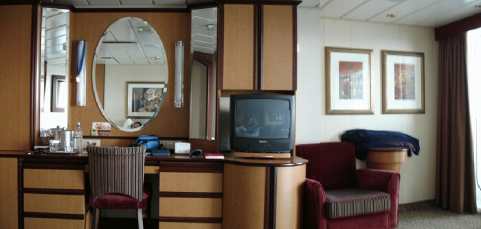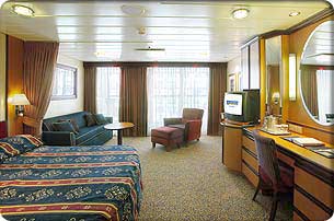 Two twin beds (can convert into queen-size), private balcony with breathtaking view, sitting area (some with sofa bed), mini bar, private bathroom, bathtub, vanity, hair-dryer, closed-circut TV, radio and phone. (293 sq. ft., balcony 66 sq. ft.) Also referred to as Superior Ocean View Suite.