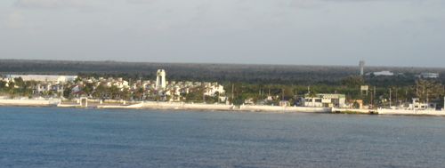 The flat land that is Cozumel. This is as we sailed into our mooring spot. Interestingly, many times nowadays the cruise ships don’t actually anchor – they “station-keep” using propellers and thrusters. That allows them to creep closer to the shore as the tides turn or other ships leave, making the tendering to and from ship and shore shorter and quicker (And thus, the passengers happier!)