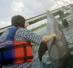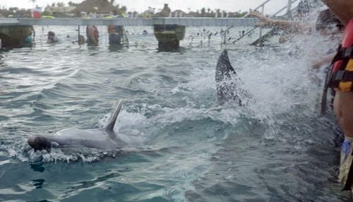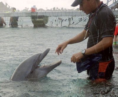 The dolphins seemed excited and happy to see each group arrive. (I suppose each group means more fish tidbits.)