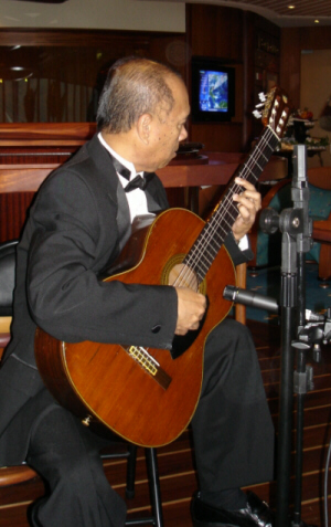 Pedro Espedido, a master guitarist. After we first heard him by happenstance in the Centrum (the main atrium), we became groupies and followed him around the ship — wherever he played, we showed up! (Well, except Elenor didn't go to the cigar bar (smoky! ICK!), but Mike did.