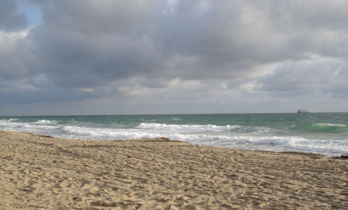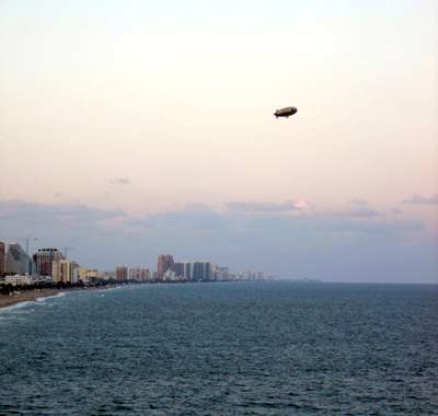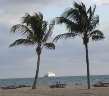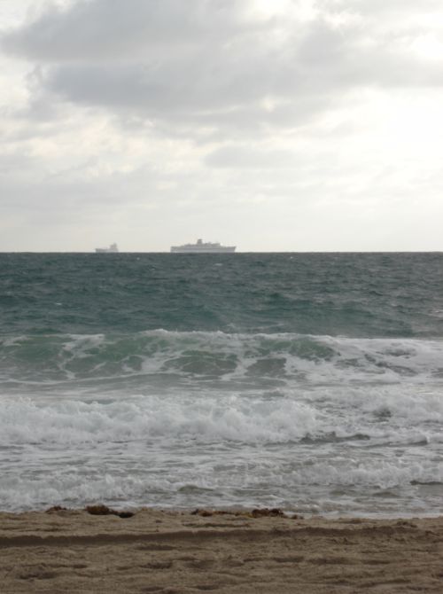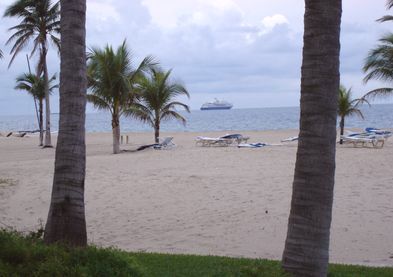 The view from the Schooner Bar looking out to sea. At the very left-most edge you can see that ship that was moored off the Lago Mar. The inlet to Port Everglades is at the left-most edge, and may even be out of the picture.
