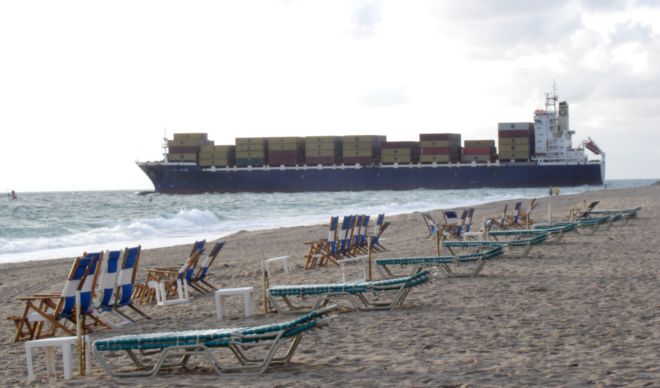 commercial traffic. (The view is from the beach at Lago Mar.)