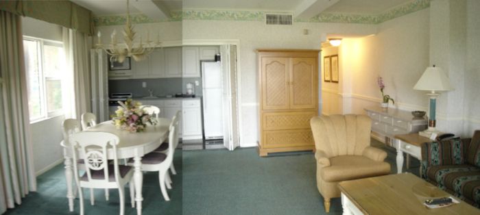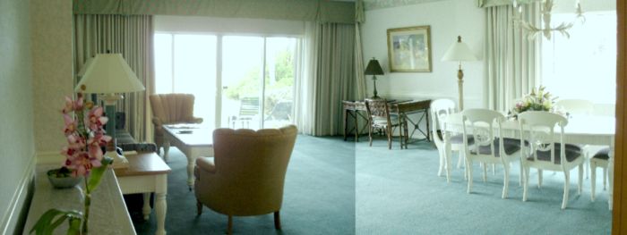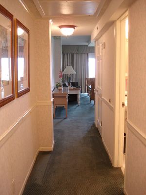 The suite hall looking toward the living room and the beach.