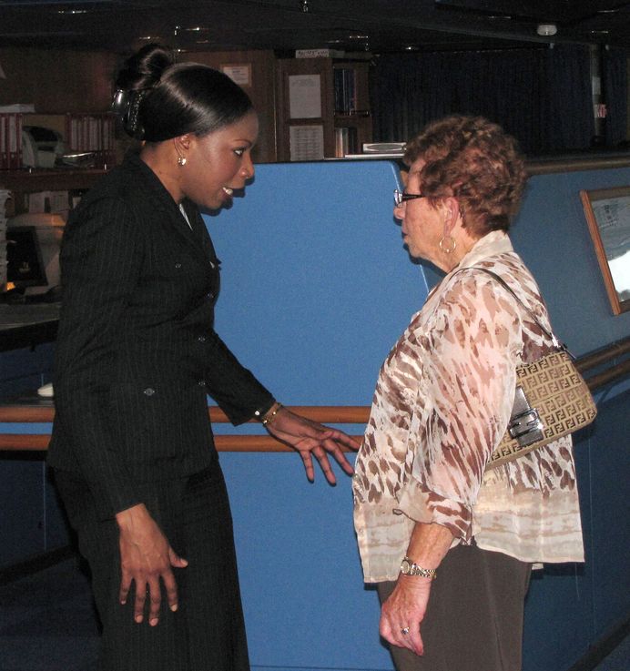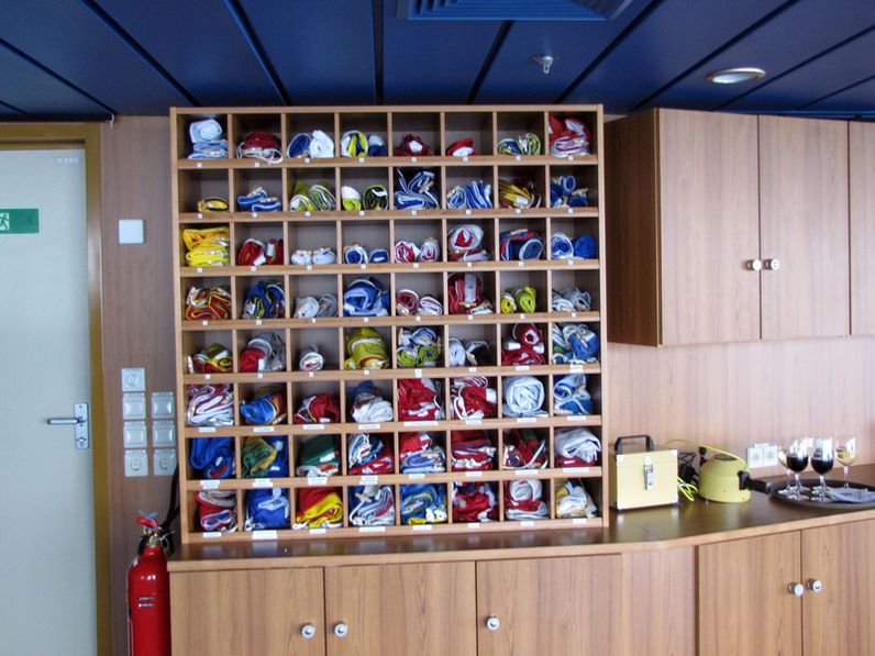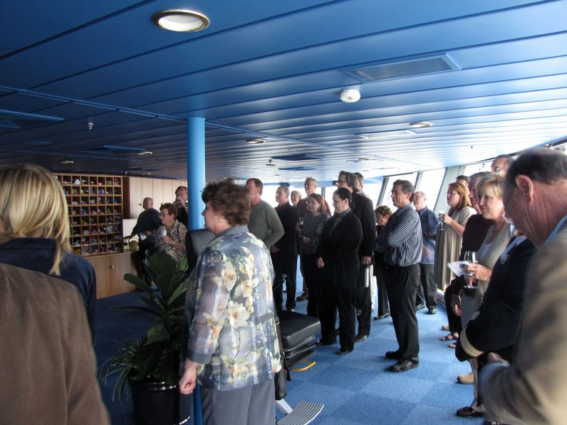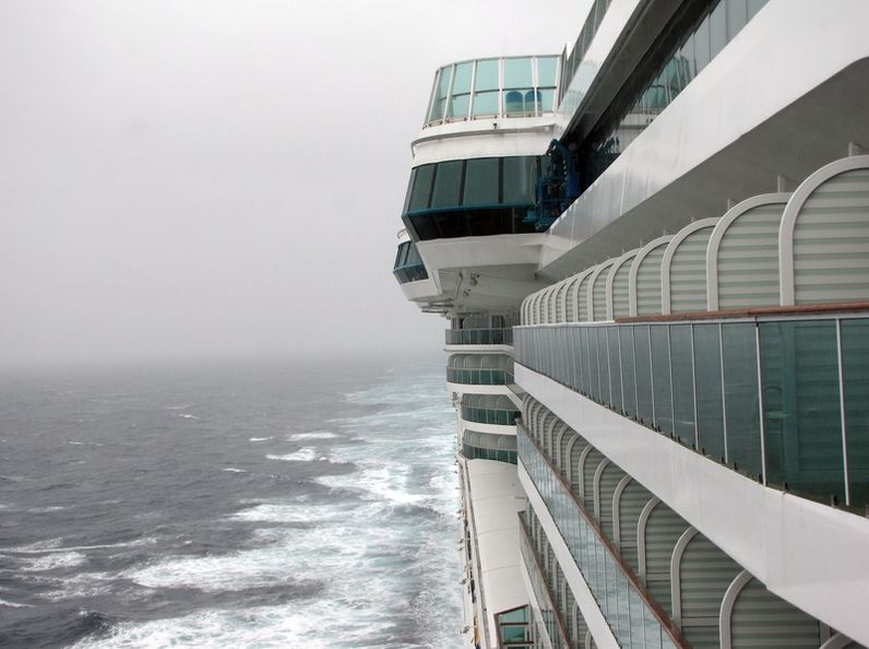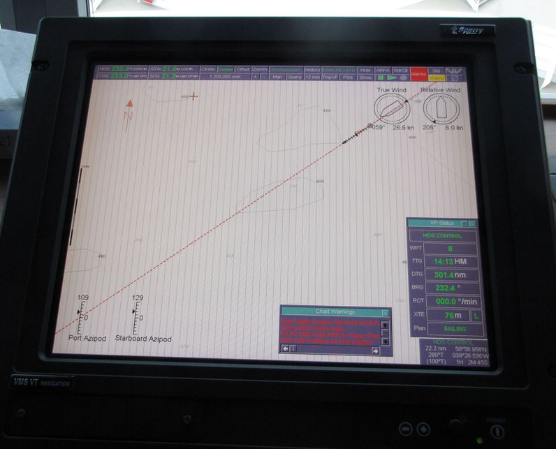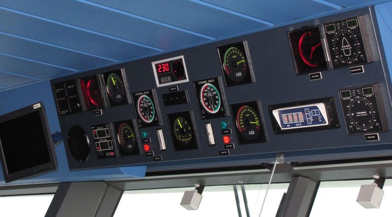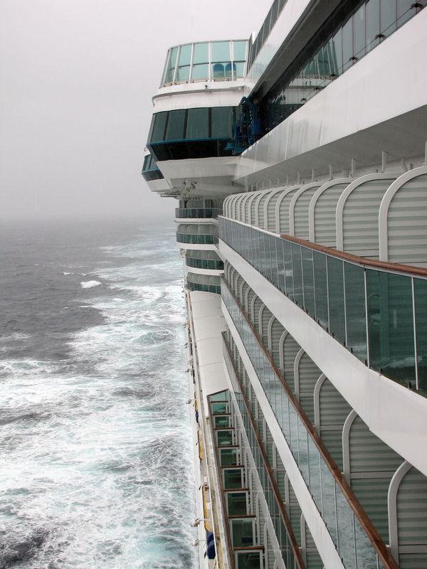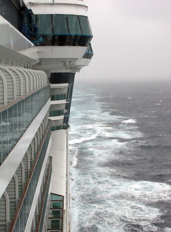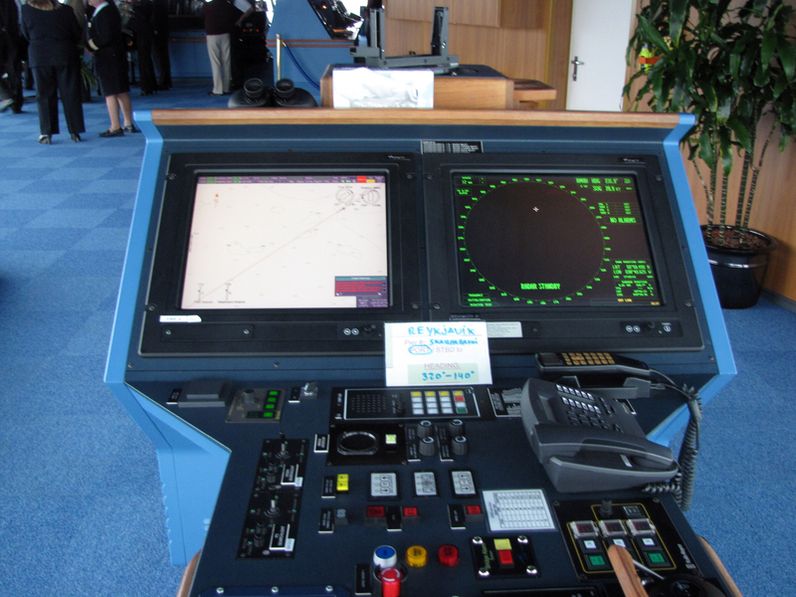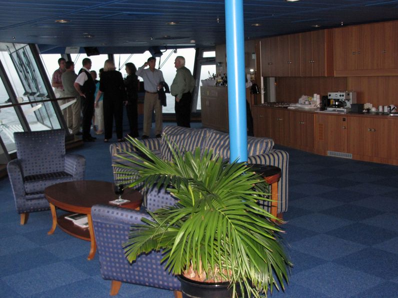 Both bridge wings have a plexiglass window in the floor, so the captain can see the dock, or tugs or sea or whatever .