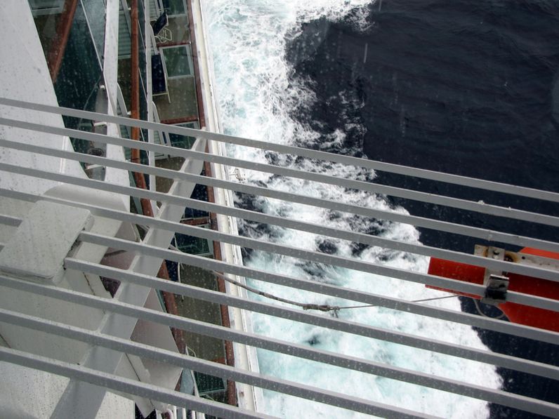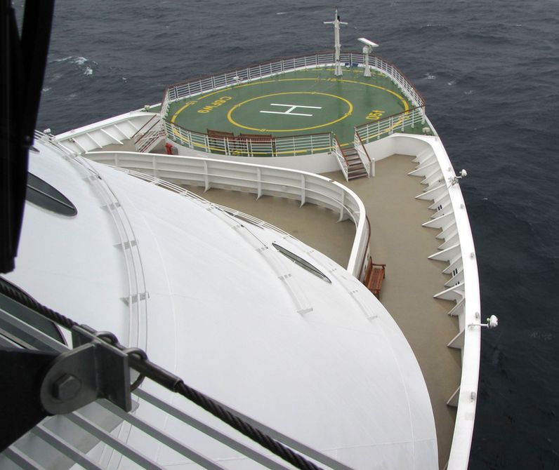 Looking aft and down from the bridge wings
