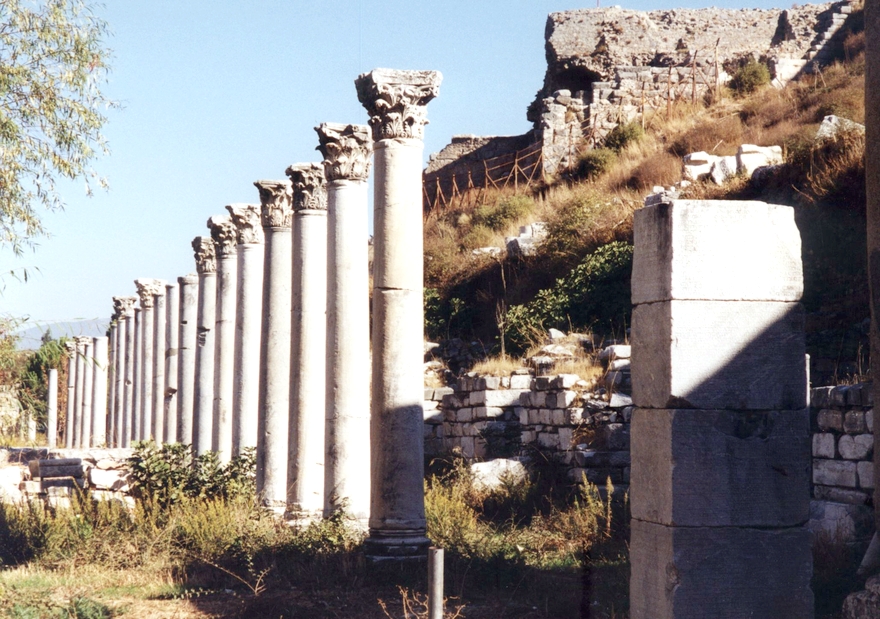 Founded in the 11th century BCE by Ionian Greeks, Ephesus was conquered and invaded by various groups through the ages. The city passed to Roman rule in 189 b.c. After being destroyed by the Goths in a.d. 262, Ephesus was rebuilt, but never regained its former splendor. Under the Byzantine Empire it declined, and its harbor silted up (it’s now 5–6 km from the water!); it was abandoned in the 14th century.