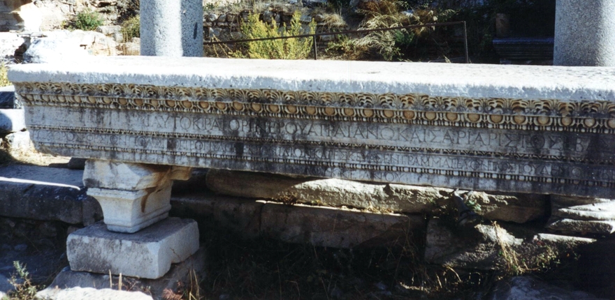 A Latin inscription with inlaid letters made of bronze is still visible on one side of the structure. Part of the inscription states: “From the Emperor Caesar Augustus, the son of the god, the greatest of the priests, who was consul twelve and tribune twenty times; and the wife of August Livia; the son of Lucus, Marc Agrippa who was consul three times, Emperor, and tribune six times; and the daughter of Julio Caesar Augustus, Mazeus and Mythridates to their master and the people.”