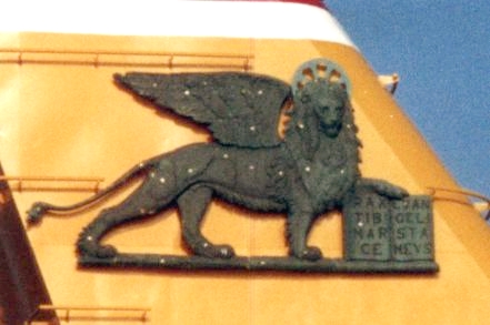 San Marco with his foot on the Bible (this was a ferryboat logo!)