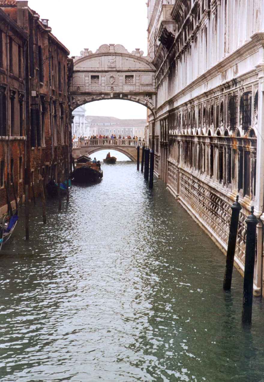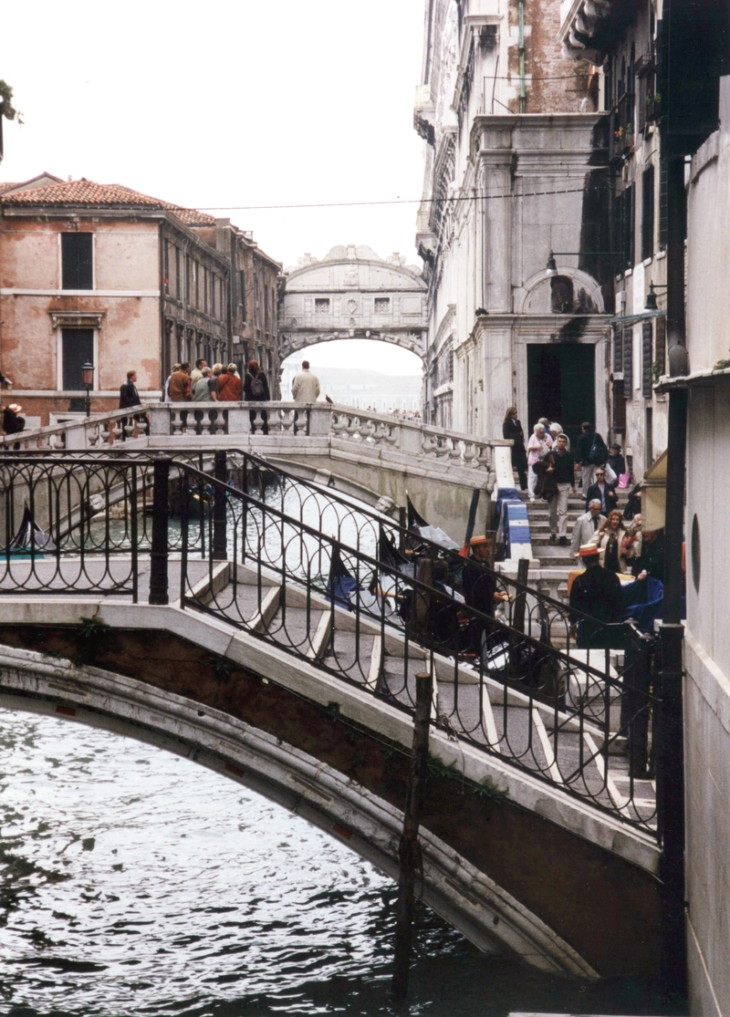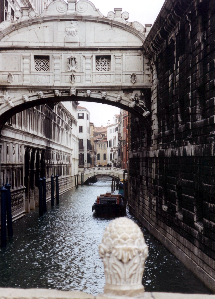 Looking up the canal called Rio de Palazzo d. Paglia. The Ponte di Sospiri (Bridge of Sighs), from which sentenced prisoners