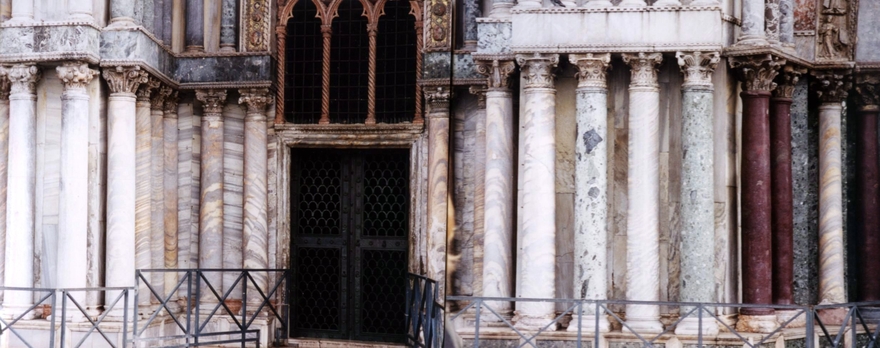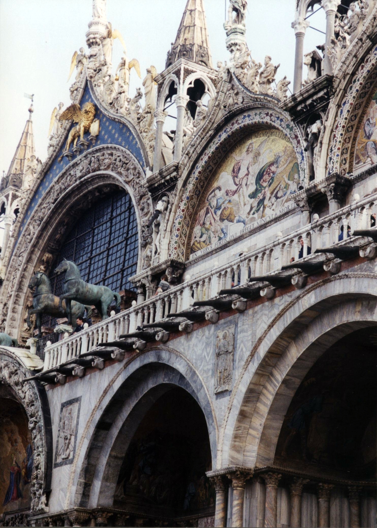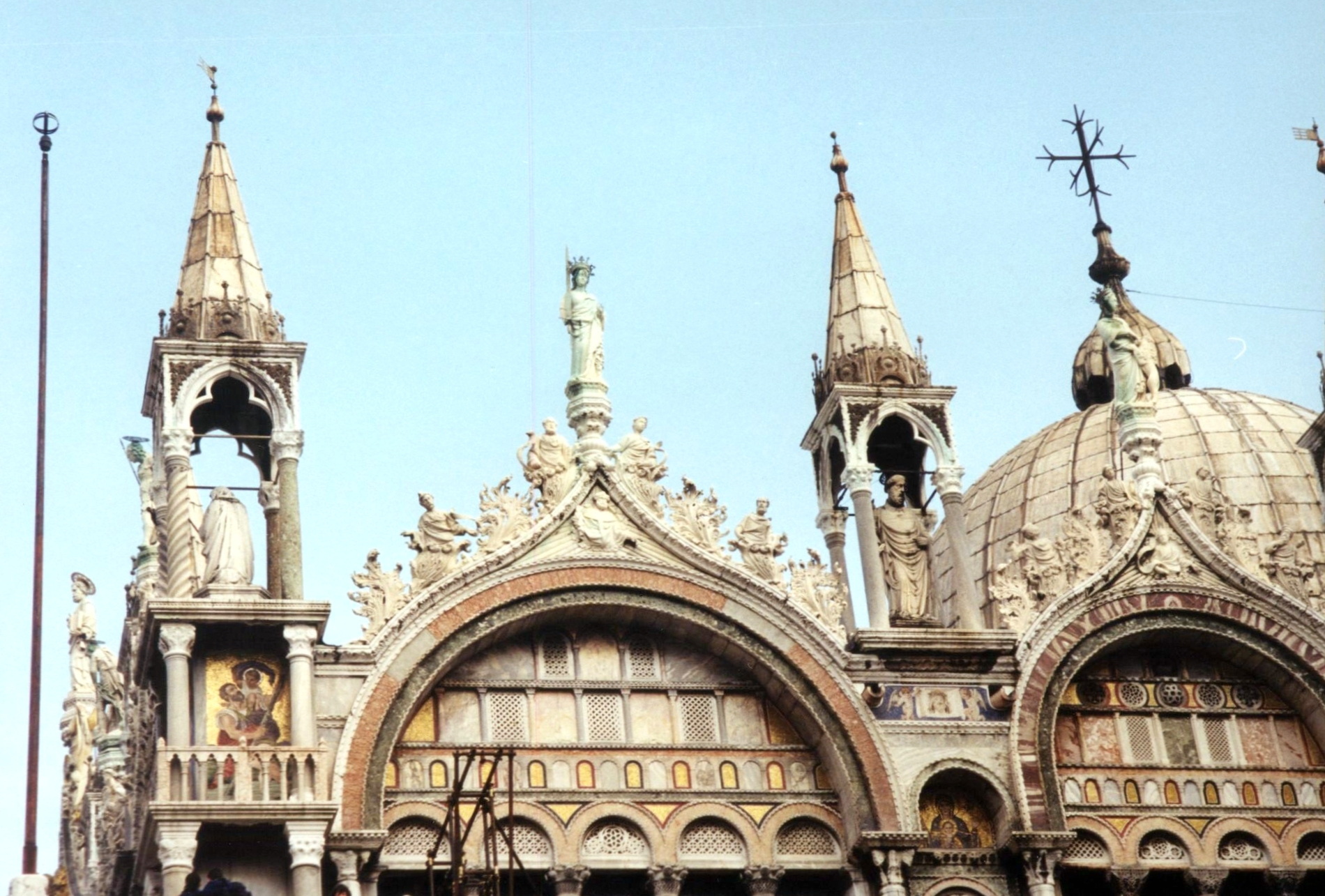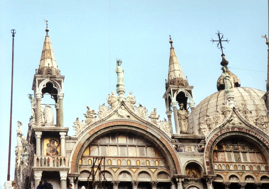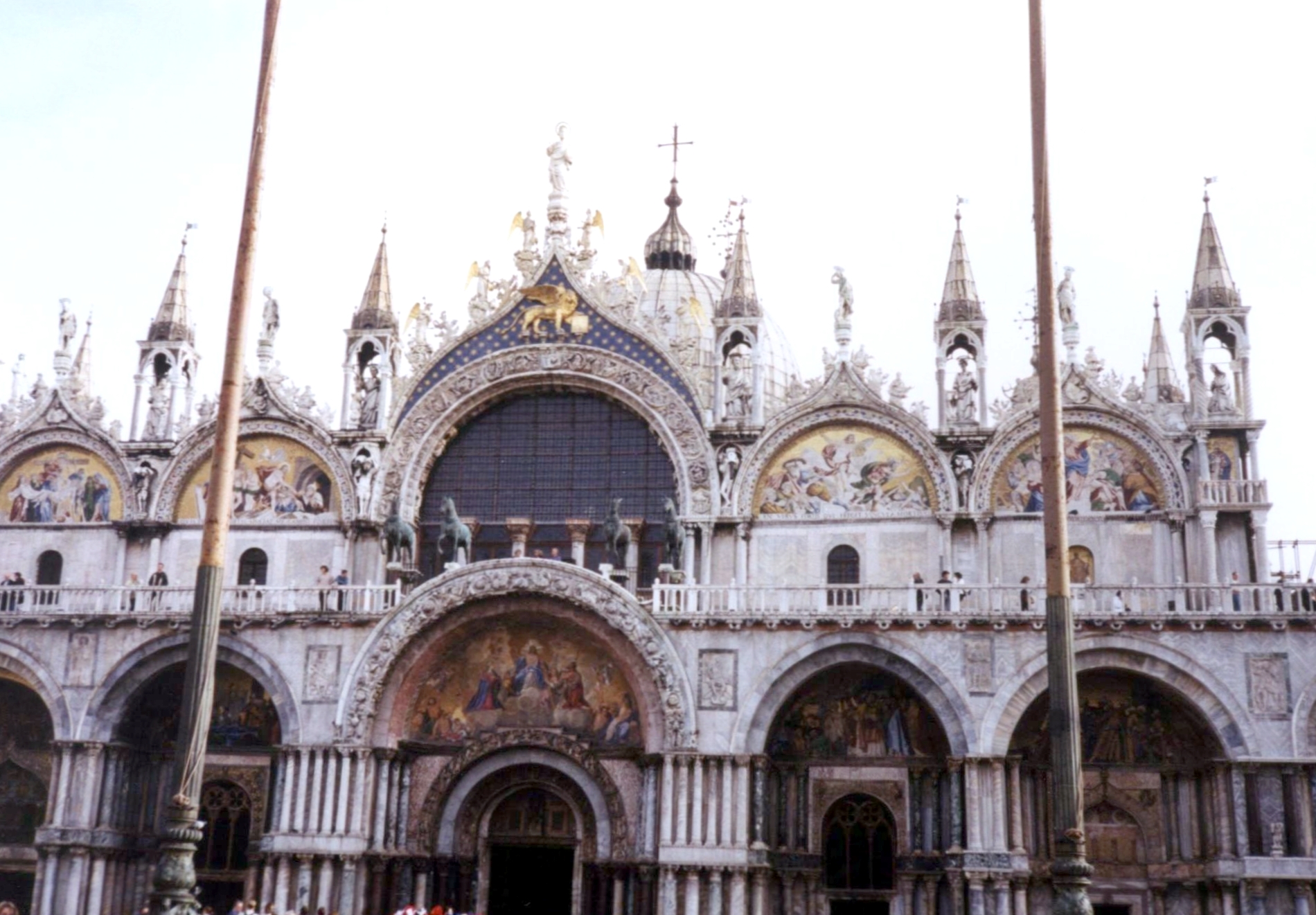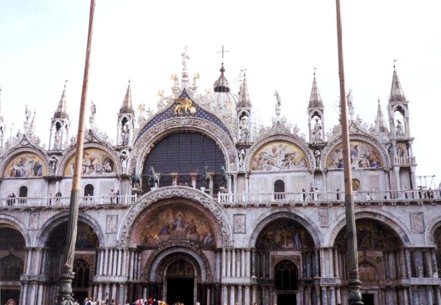 The Basilica di San Marco, started about AD 828, reconstructed after a fire in 976, and rebuilt between
