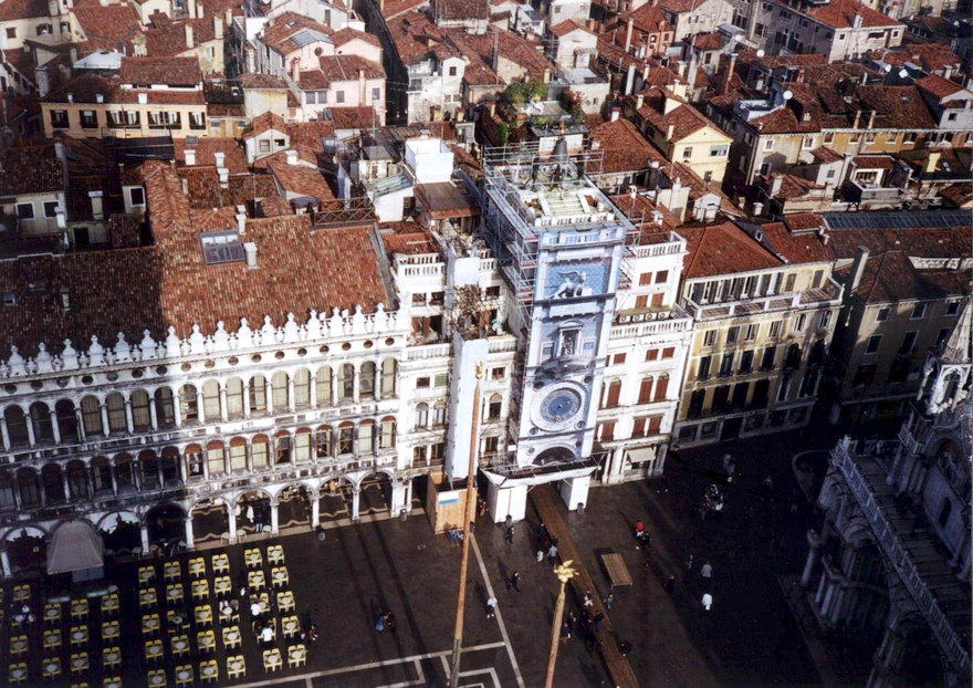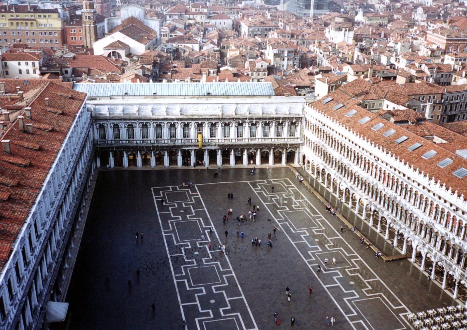 Looking down onto Piazza San Marco. You can see the shadow of the Campanile in the Square.