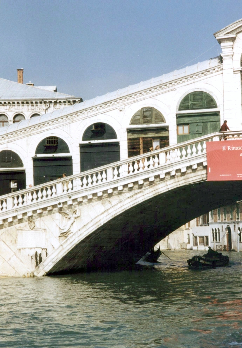 The view downstream from below the bridge from below the Ponte Rialto (Rialto Bridge)