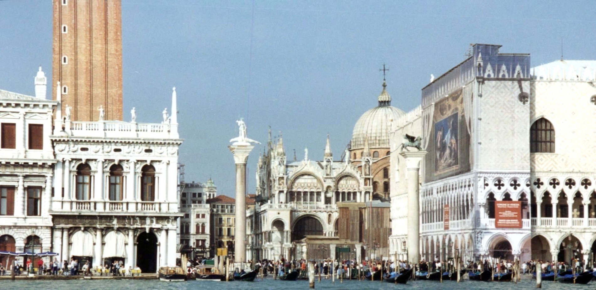 The column of Venice’s patron saint, Saint Mark (San Marco) is visible on the left.