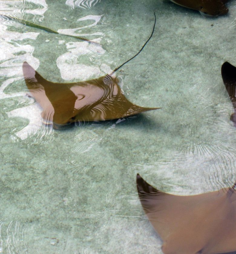 Water’s Edge Lagoon The migratory cownose ray Rhinoptera bonasus schools for protection and this confuses potential predators that try to single out one individual.