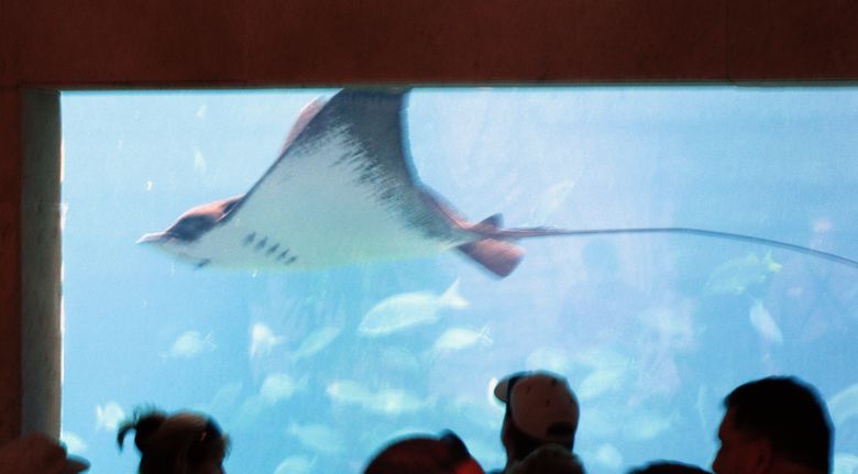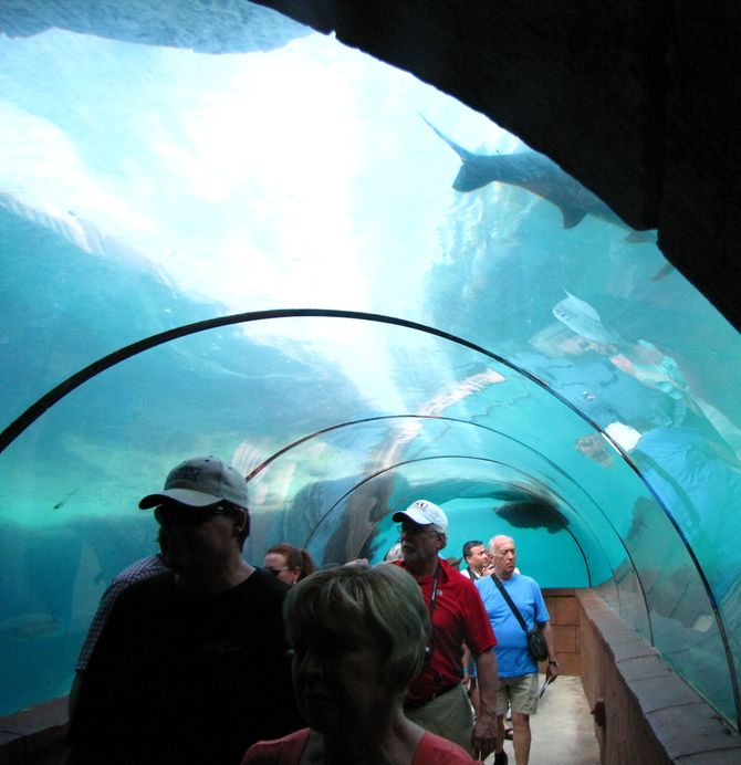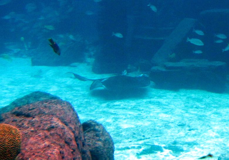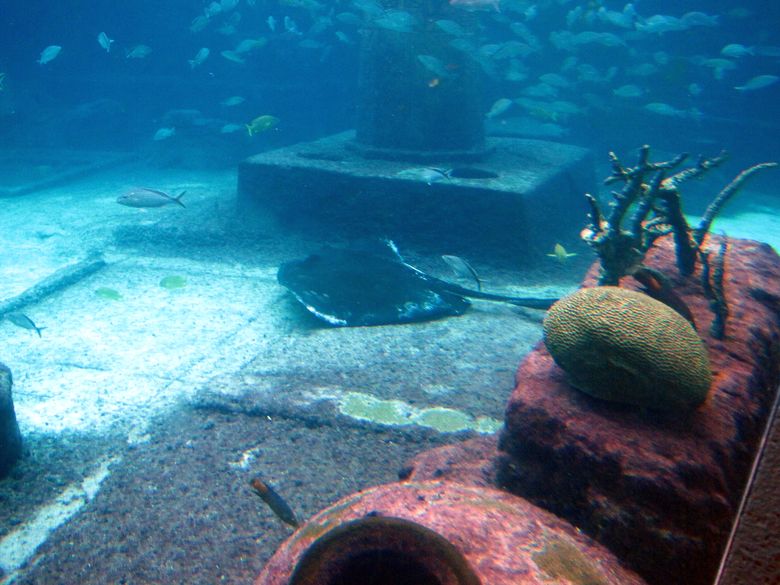 A Predator Lagoon is full of sawfishes, barracudas and stingrays. A 100-foot (30 m) clear acrylic tunnel runs underwater, allowing visitors unobstructed views of the marine environment.