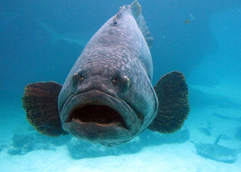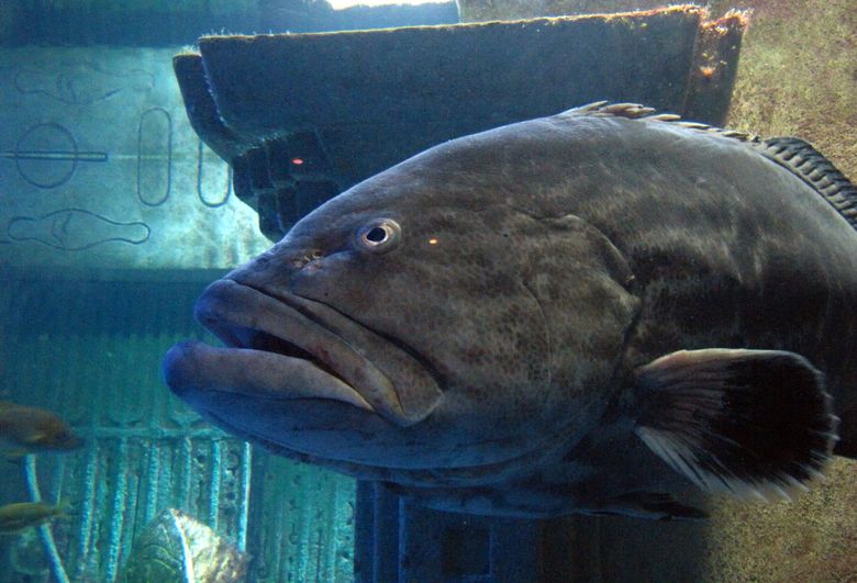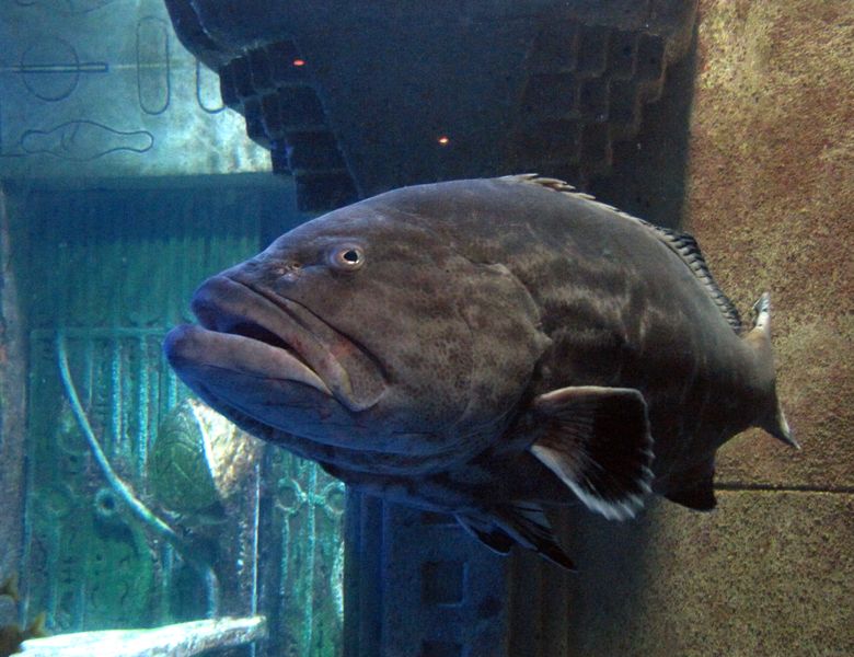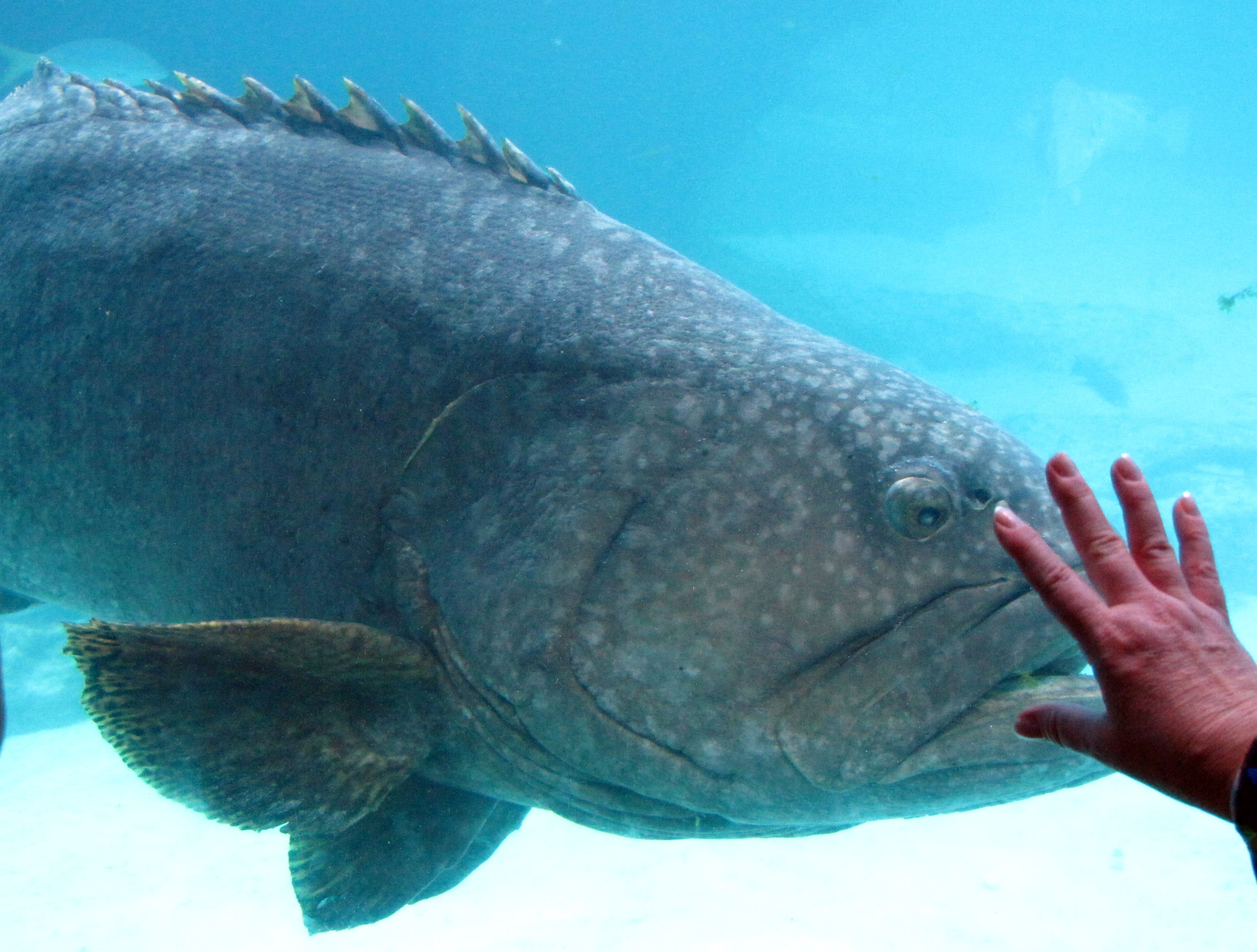 Grouper exhibit The goliath grouper Epinephelus itajara and the Nassau grouper Epinephelus striatus now make their home in what was once a part of the lab. The goliath grouper can grow to more than 8 ft. in length and weight more than 800 lb. Groupers gather annually in huge numbers to spawn on ancestral grounds.