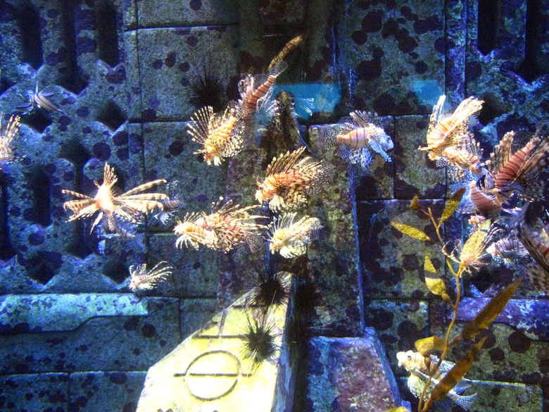 Lionfish Exhibit Once the end of a main street, lionfish Pterois volitans, spotted scorpion fish Scorpaena plumieri, and long-spine urchin Diadema antillarum now call this enclosed area home.