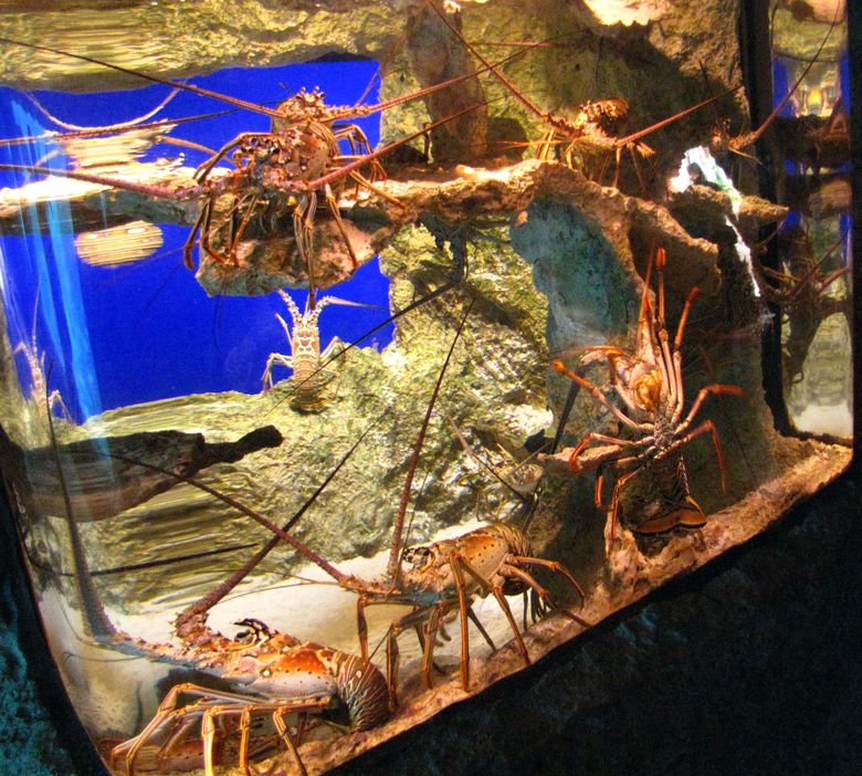 Lobster exhibit Once used by the Atlanteans for waste disposal, this site has now been taken over by spiny lobster Panulirus argus and slipper lobster Scyllarides aequinoctialis. These reef dwellers grow by molting. This occurs when the shell, or exoskeleton, splits apart, exposing the new shell that has developed under it.