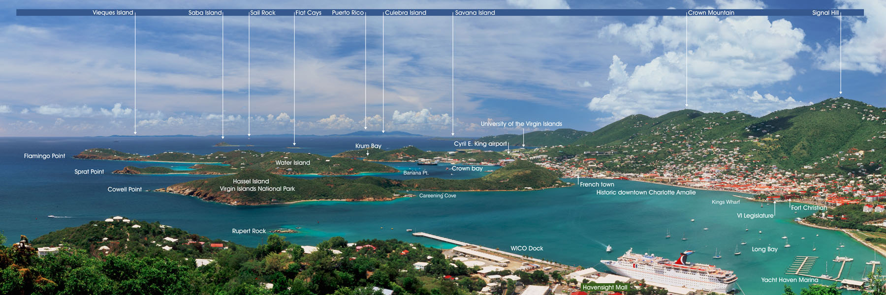 Charlotte Amalie (named for a Danish Queen), the the capital of the United States Virgin Islands and the most popular cruise port in the Caribbean.