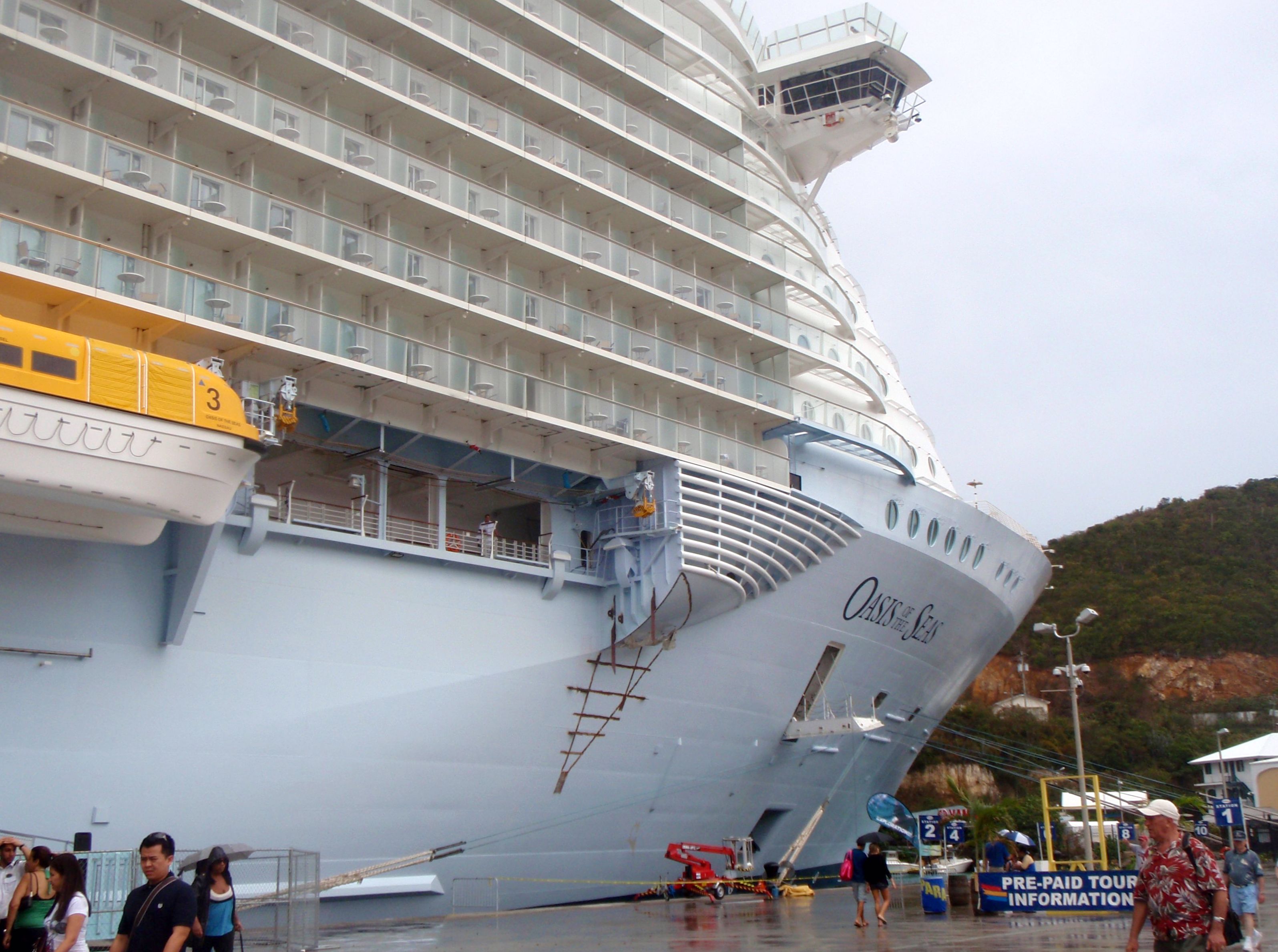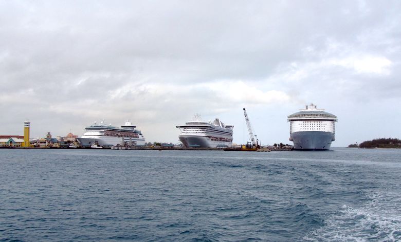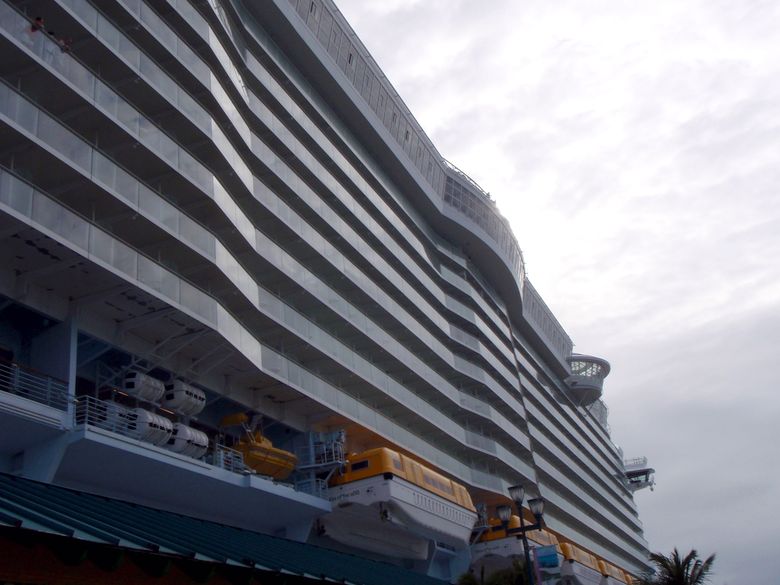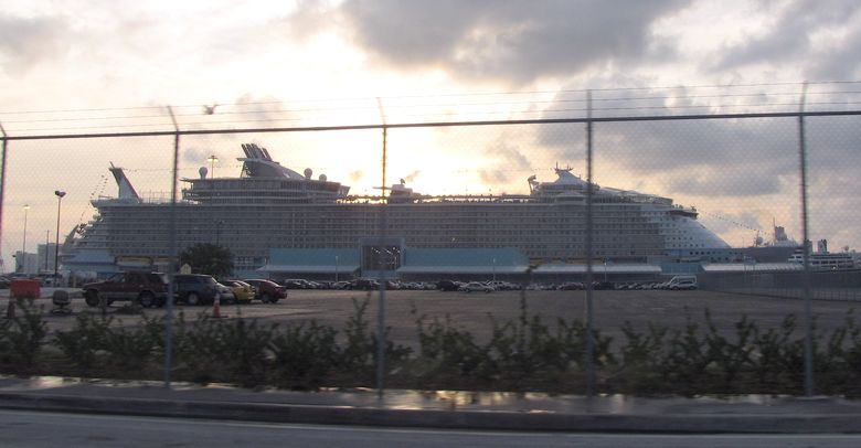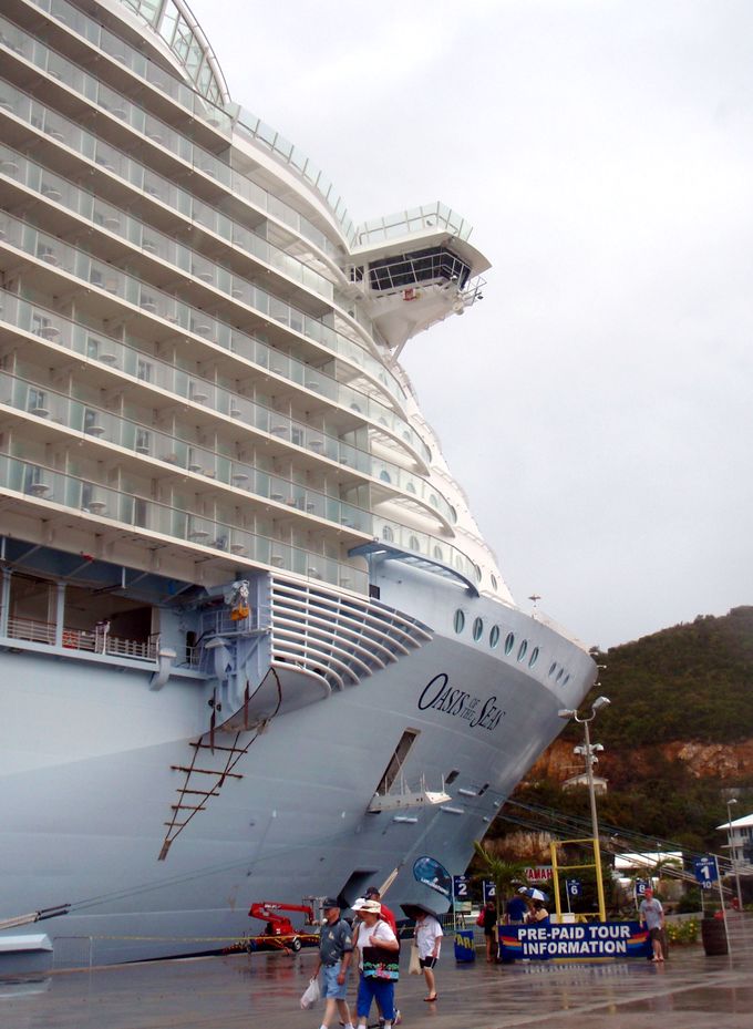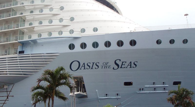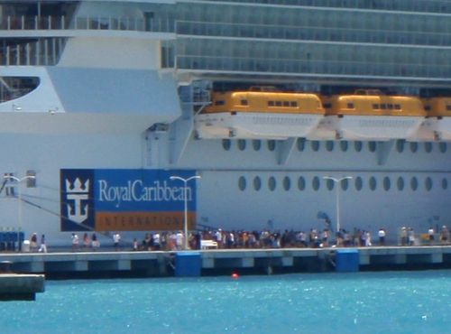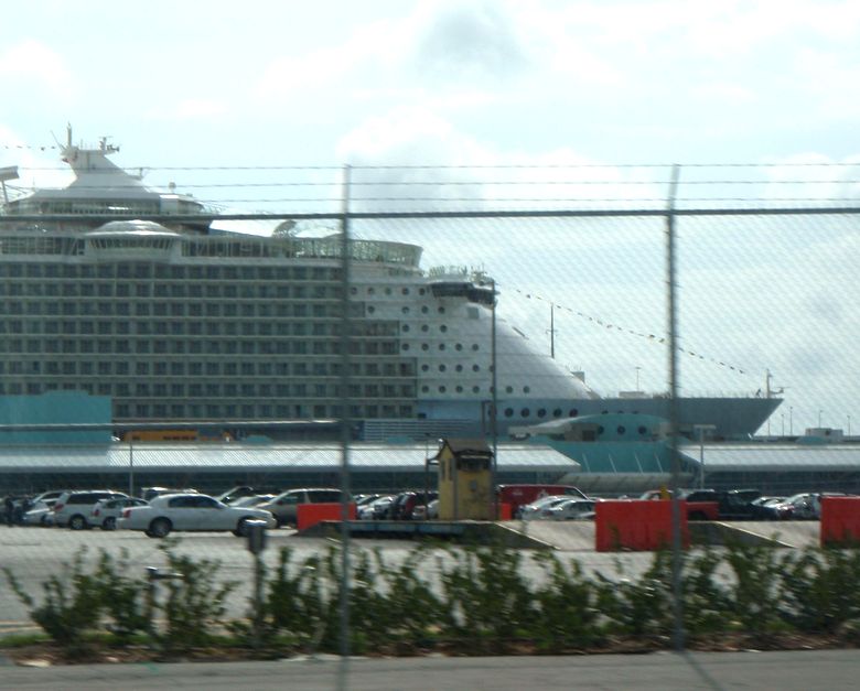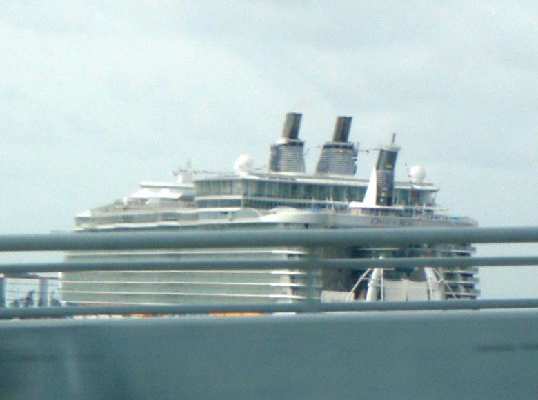 A Princess ship and the Monarch (Majesty?) of the Seas inboard of Oasis (Nassau)