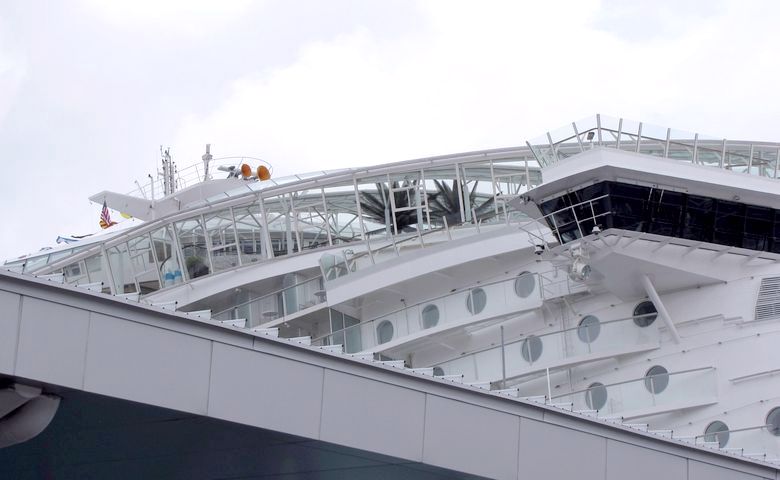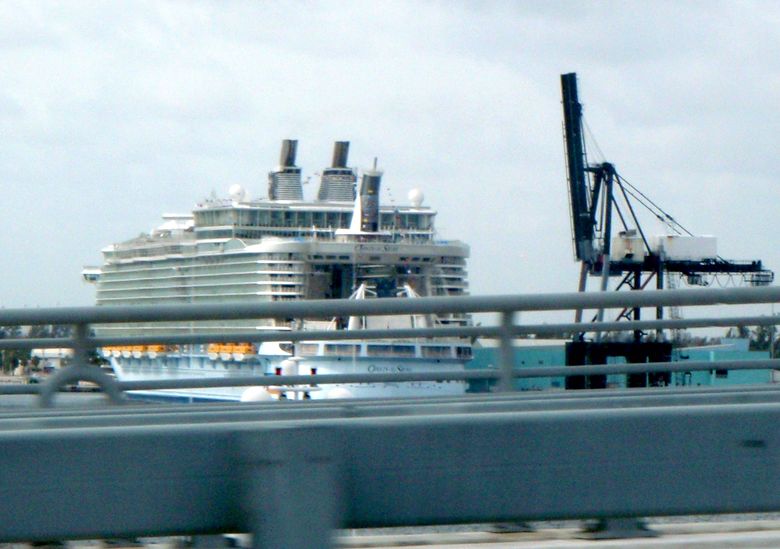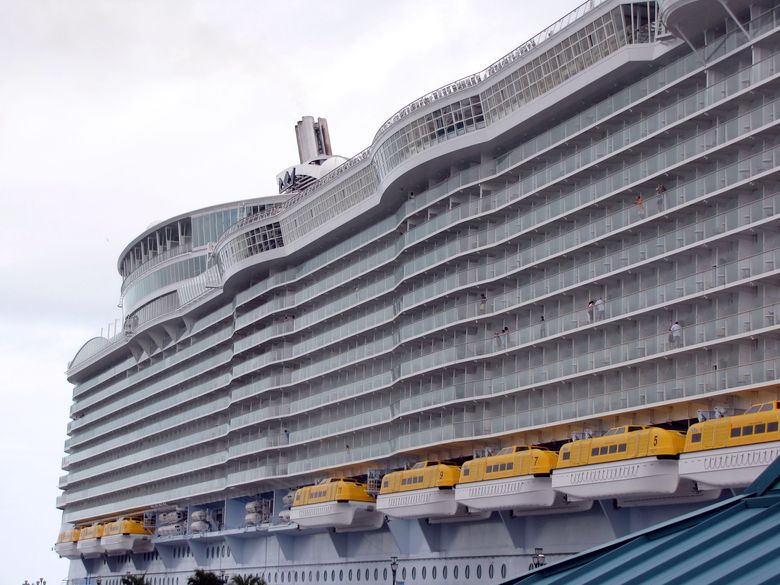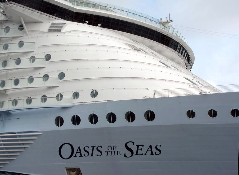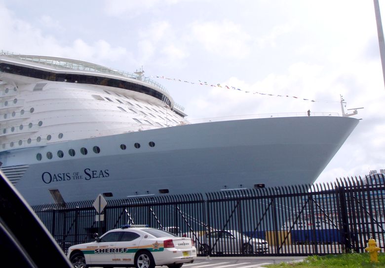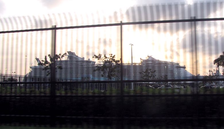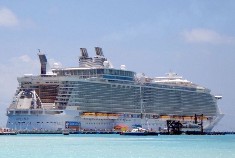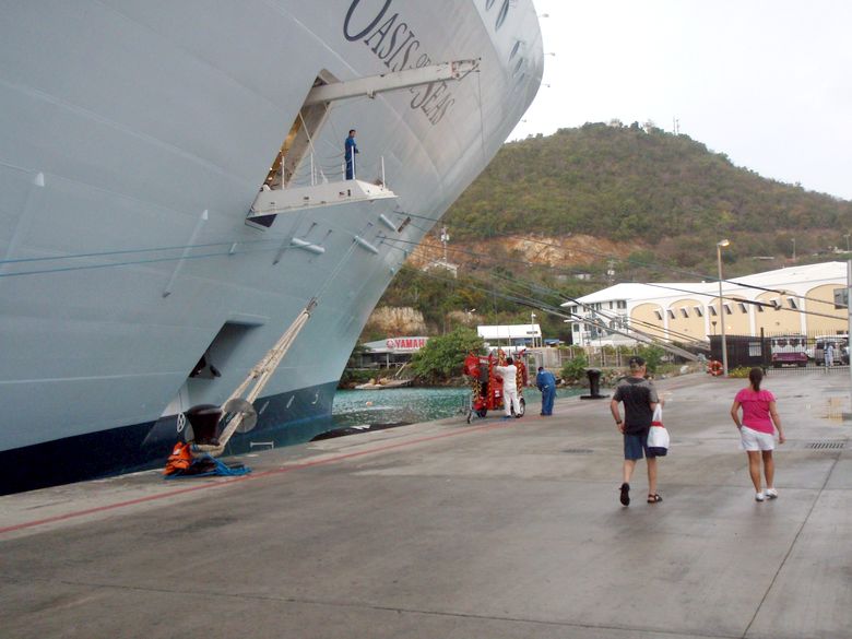 A Princess ship and the Monarch (Majesty?) of the Seas inboard of Oasis (Nassau)
