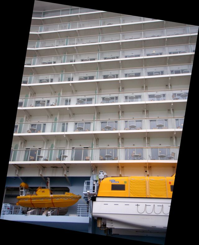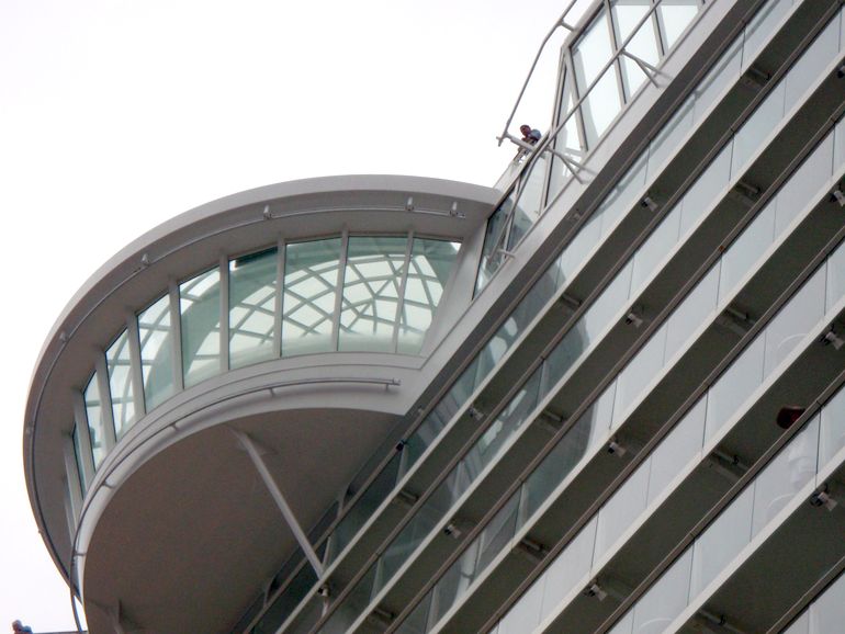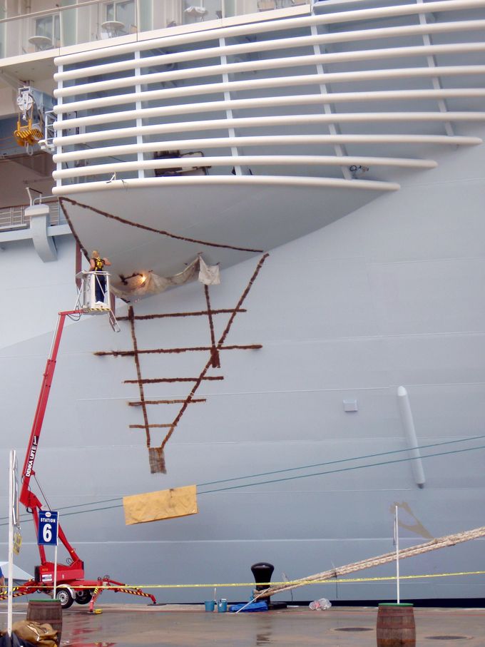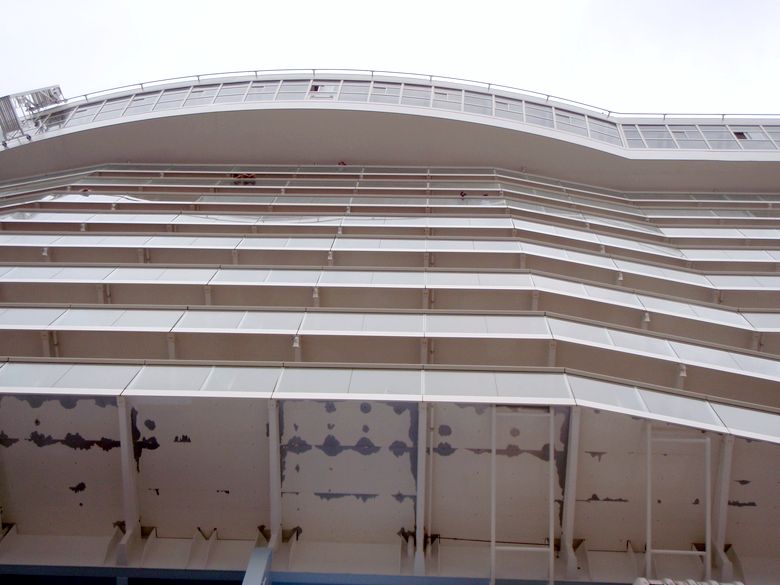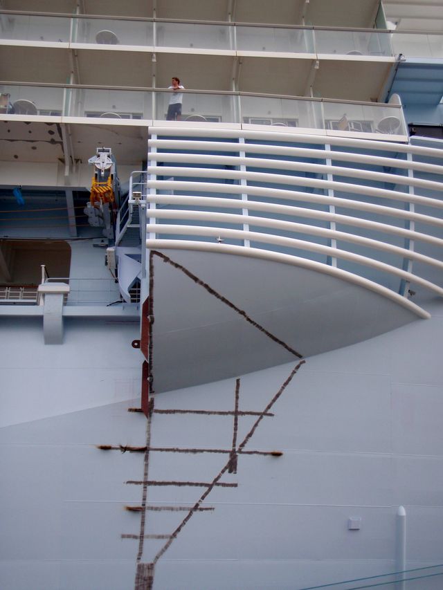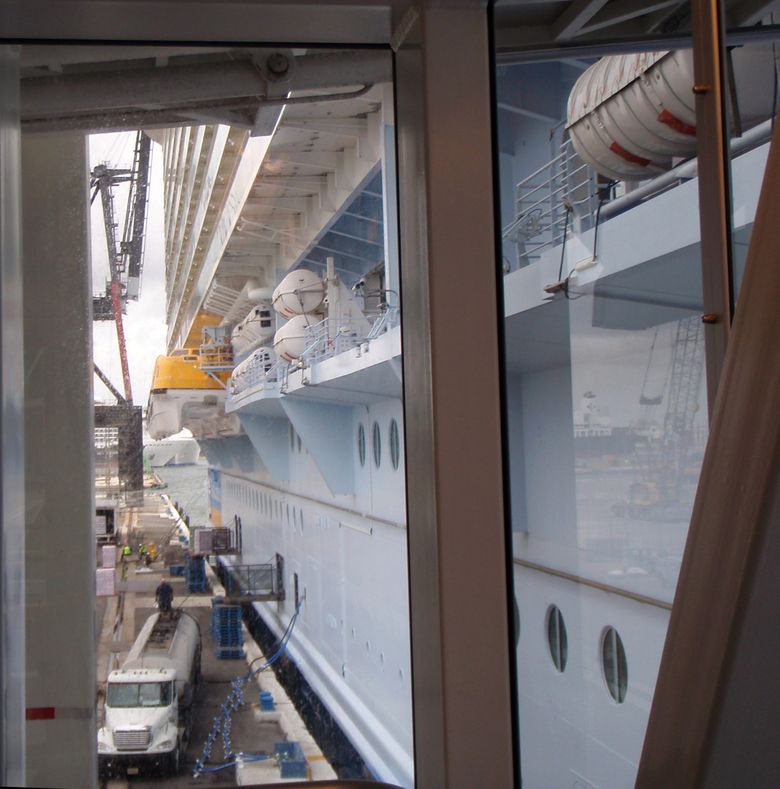 On her voyage from Finland to Fort Lauderdale, in December 2009, they hit some very heavy seas, and the protective bars they'd placed to protect the life boats actually didn't manage to protect the first lifeboats. So, they re-engineered the drawings and sent more bars to be welded on to protect the lifeboats in future.