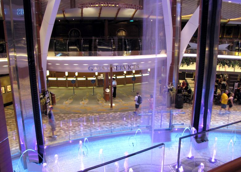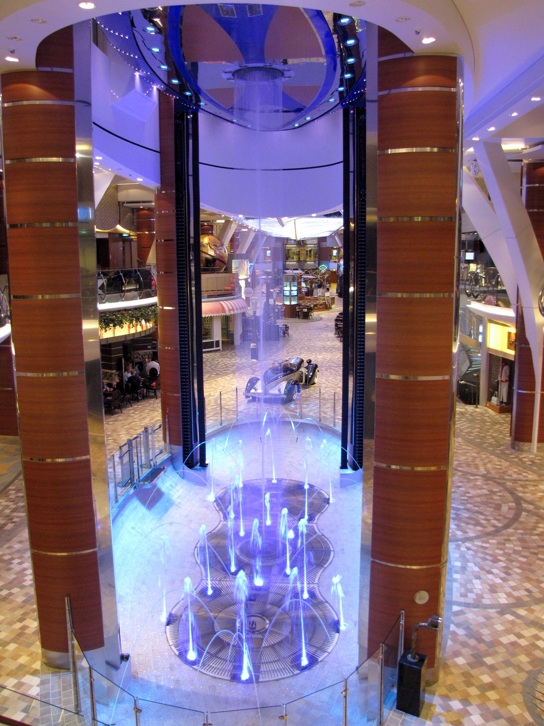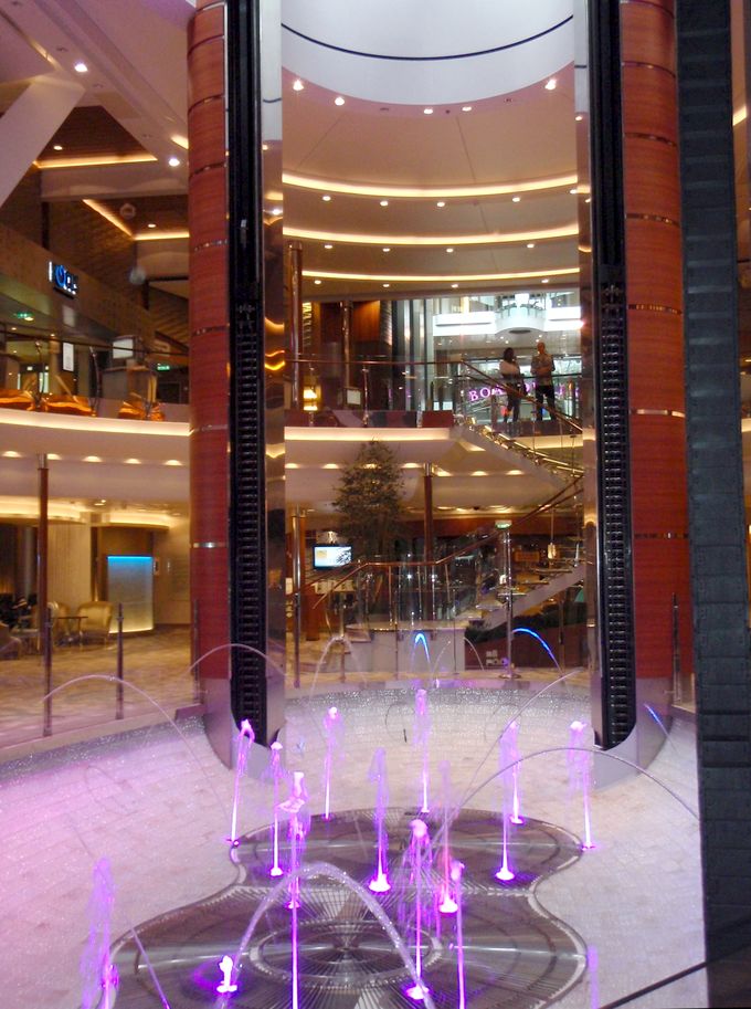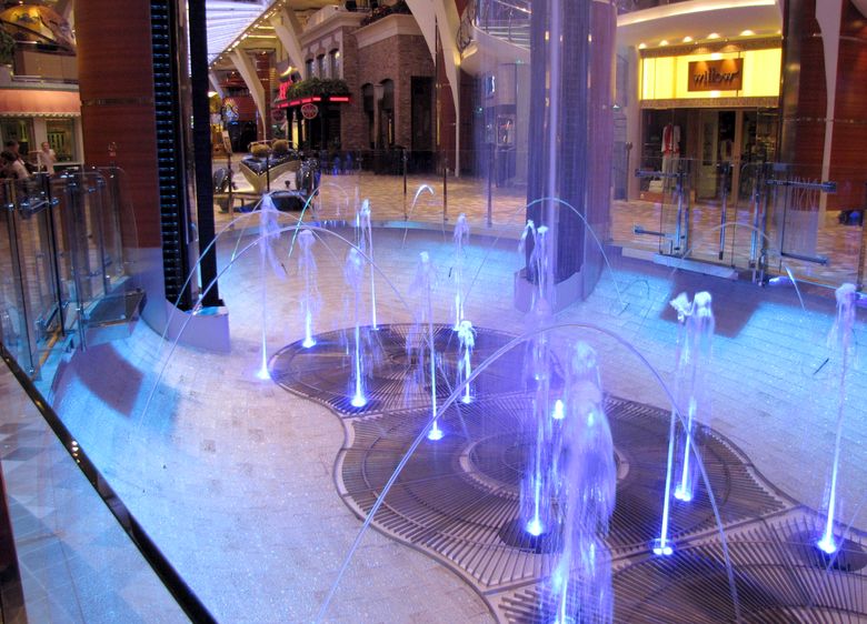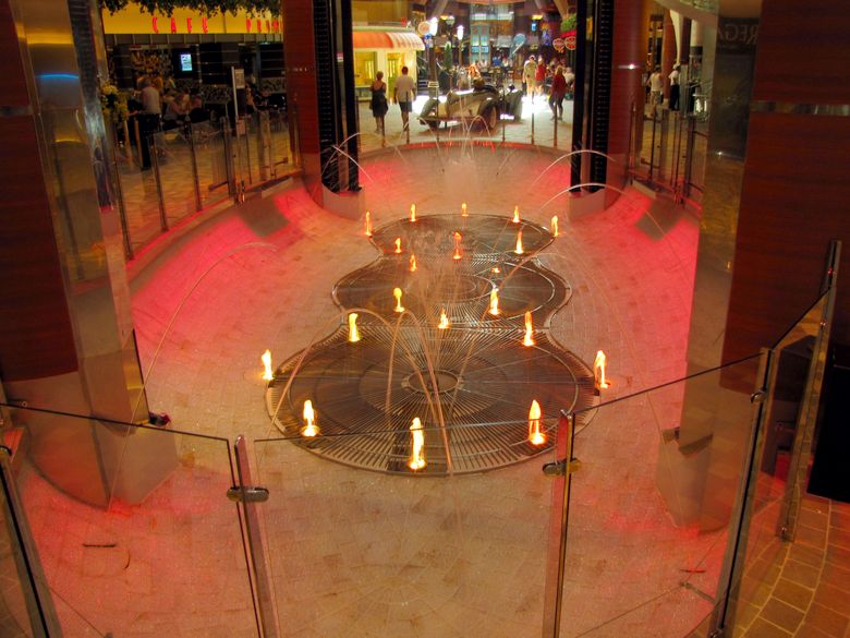 When the bar is up (either during its travels, or at night when it’s closed), the fountains dance below.
