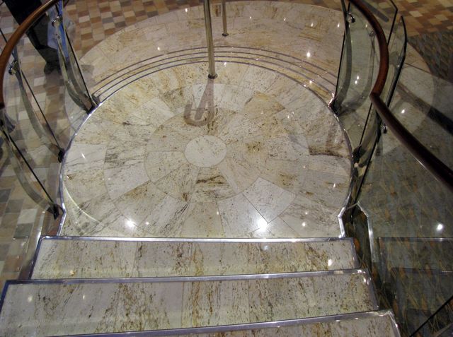 Glass spiral staircase up to Focus