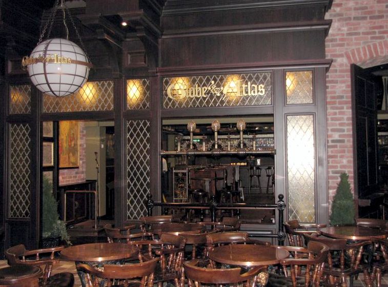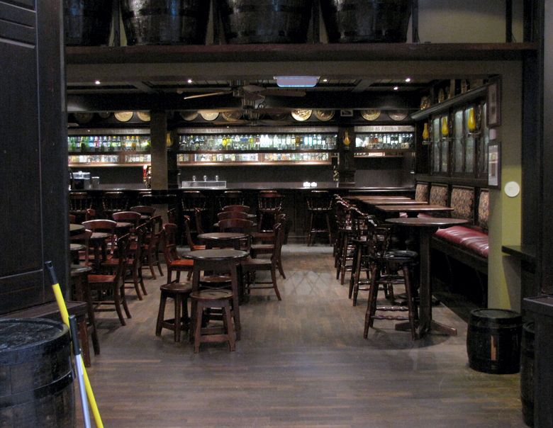 The bar rising past the trivia players in the Schooner Bar