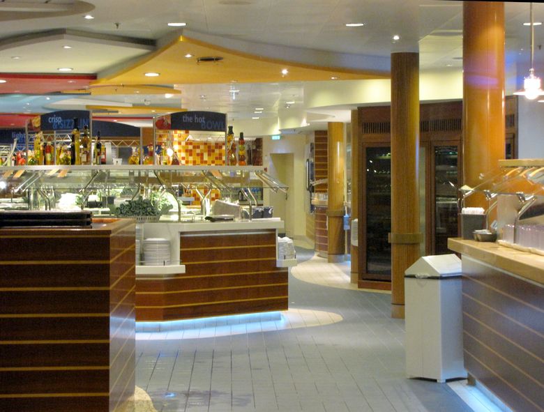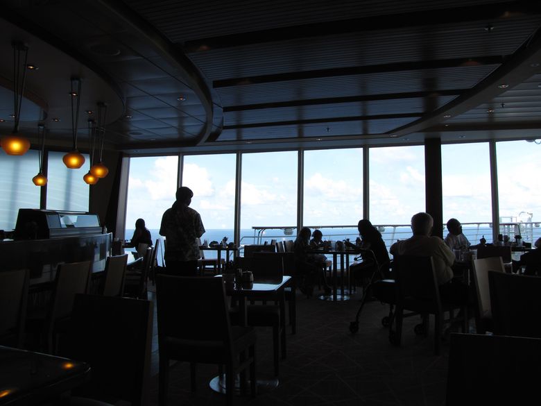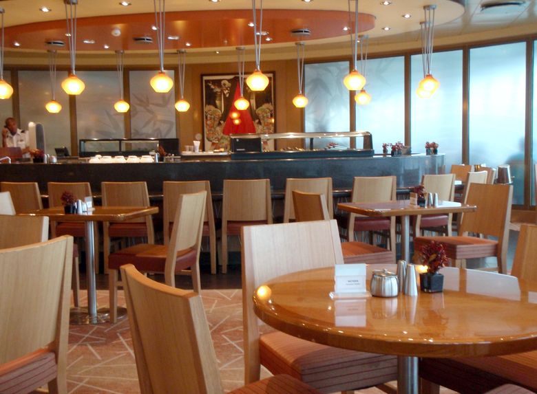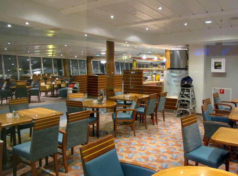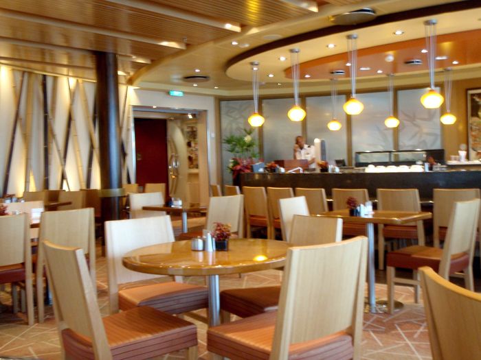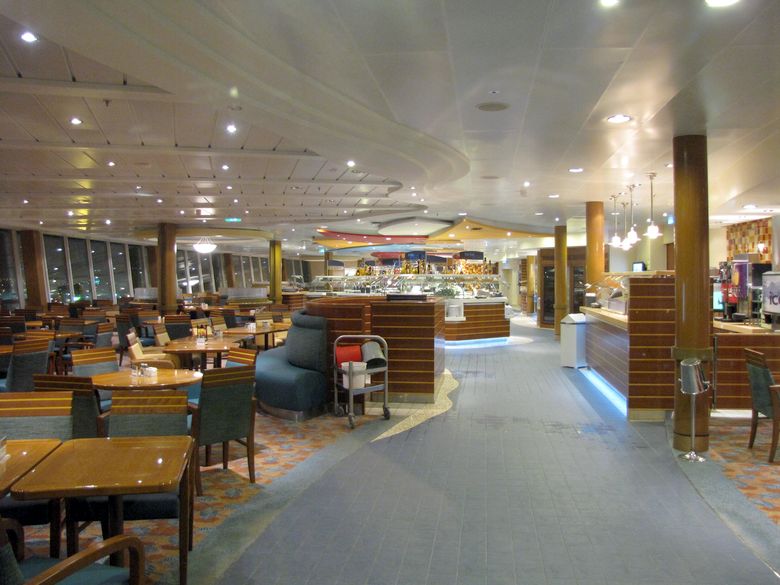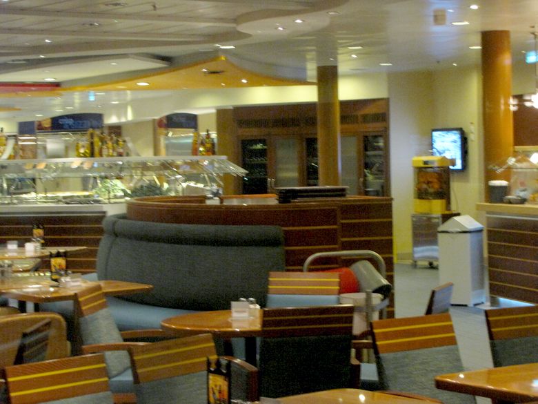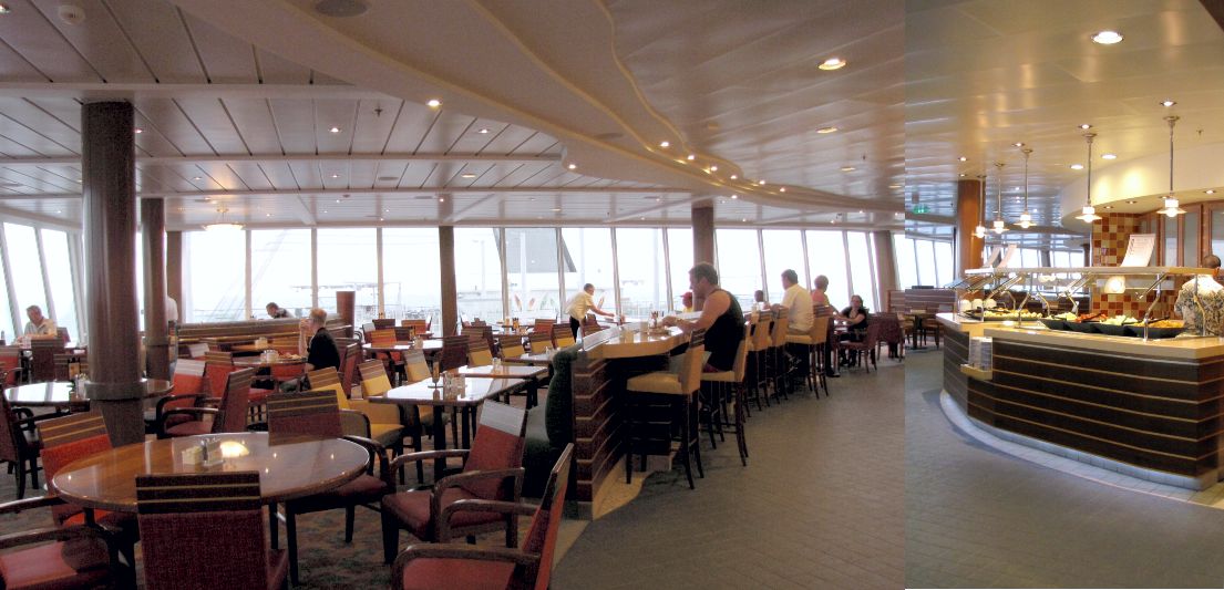 open for seating at breakfast and lunch for suite passengers. Pick up uyour food in Windkjammer, and go