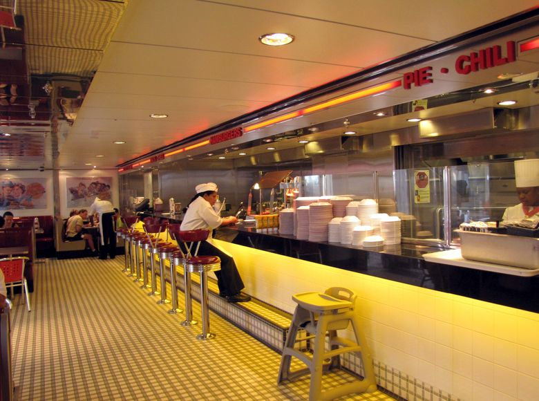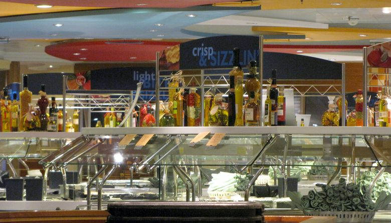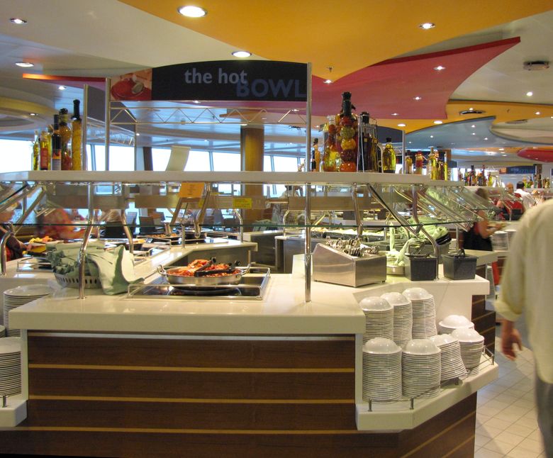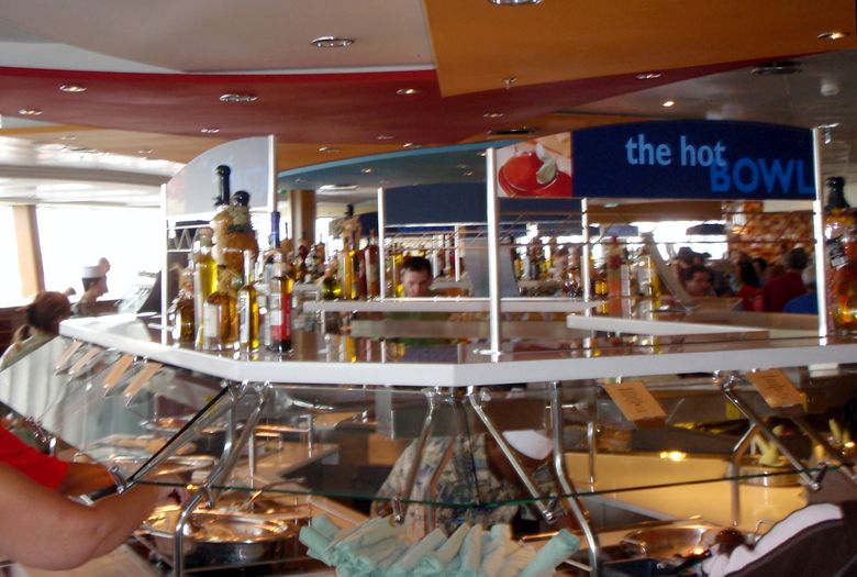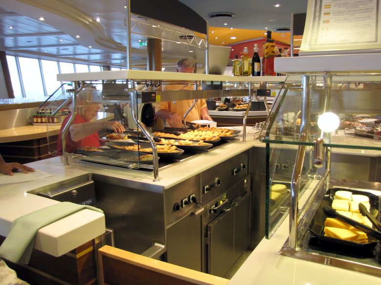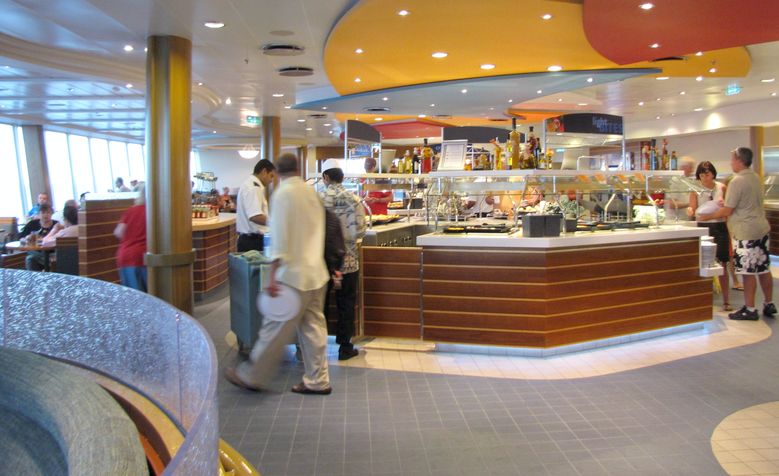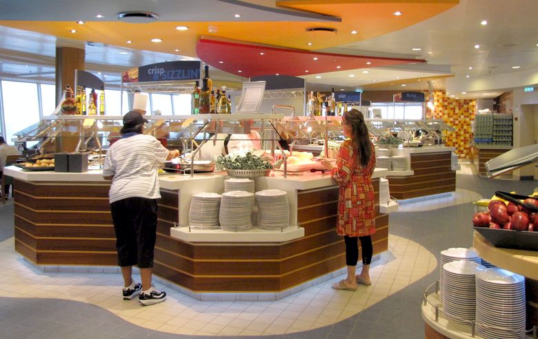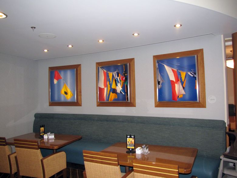 open for seating at breakfast and lunch for suite passengers. Pick up uyour food in Windkjammer, and go