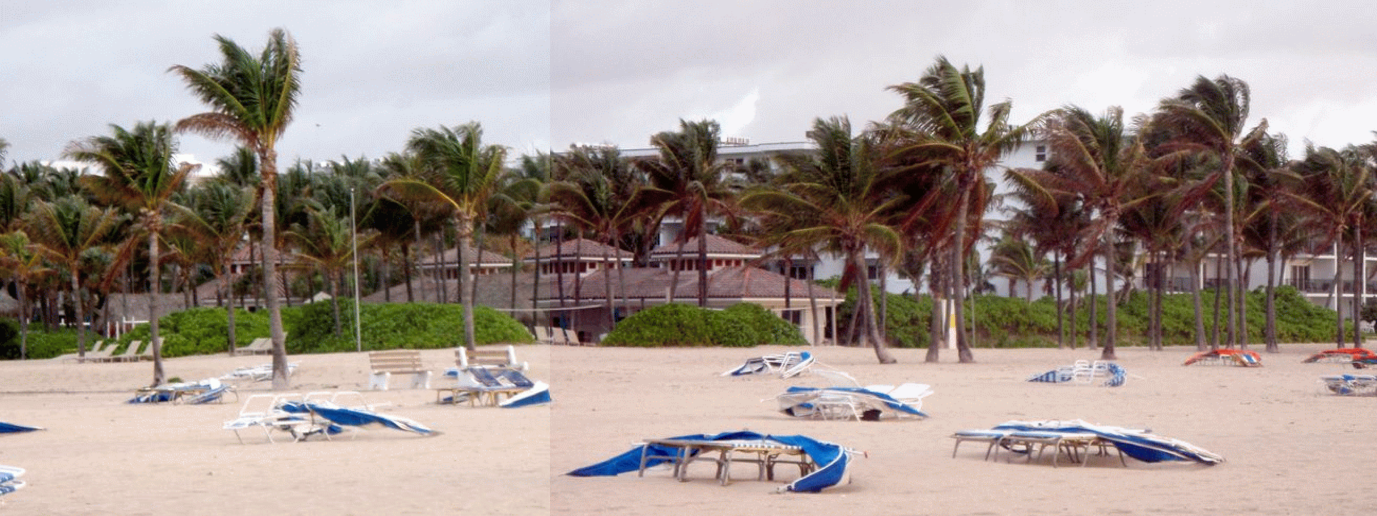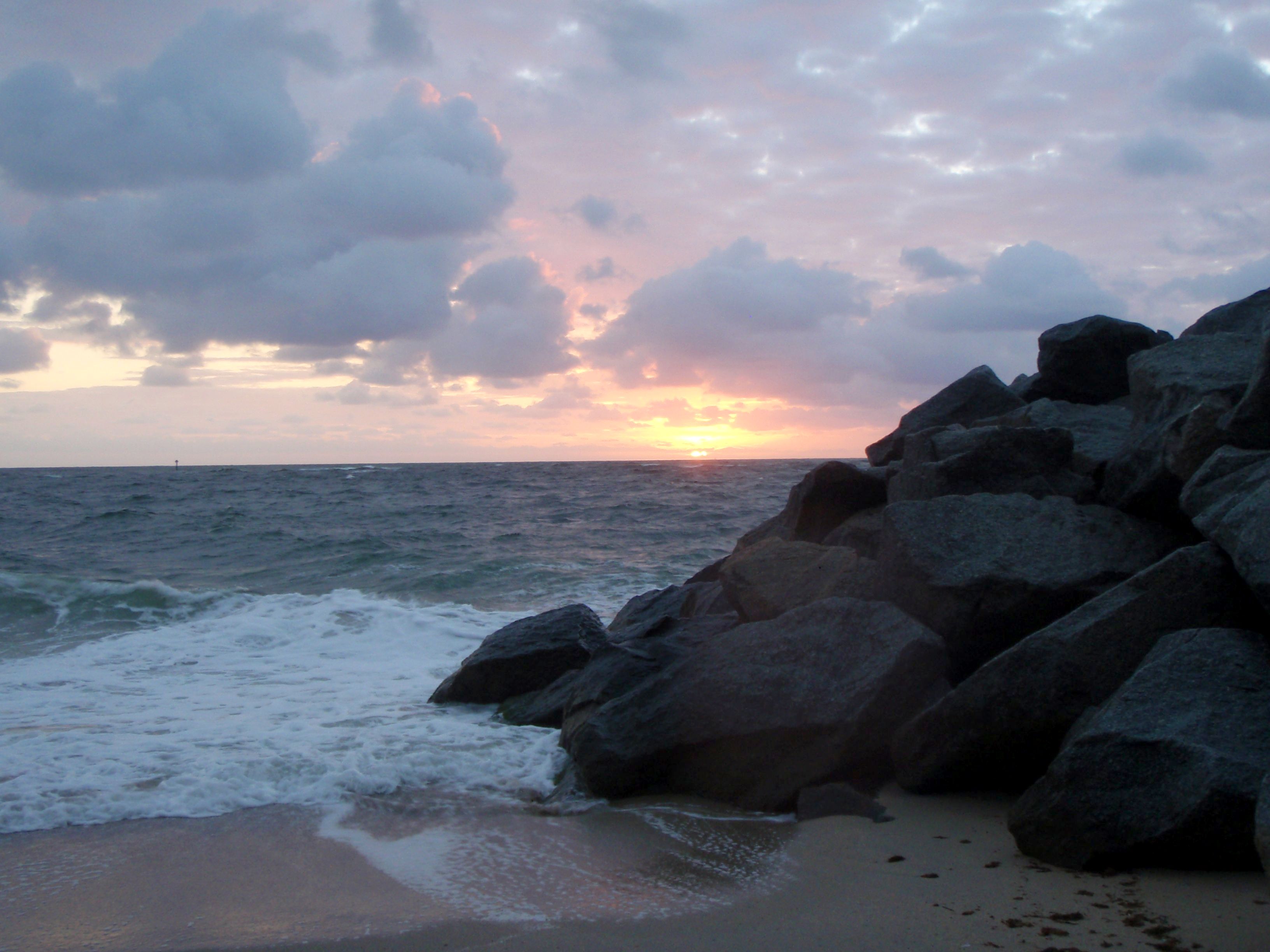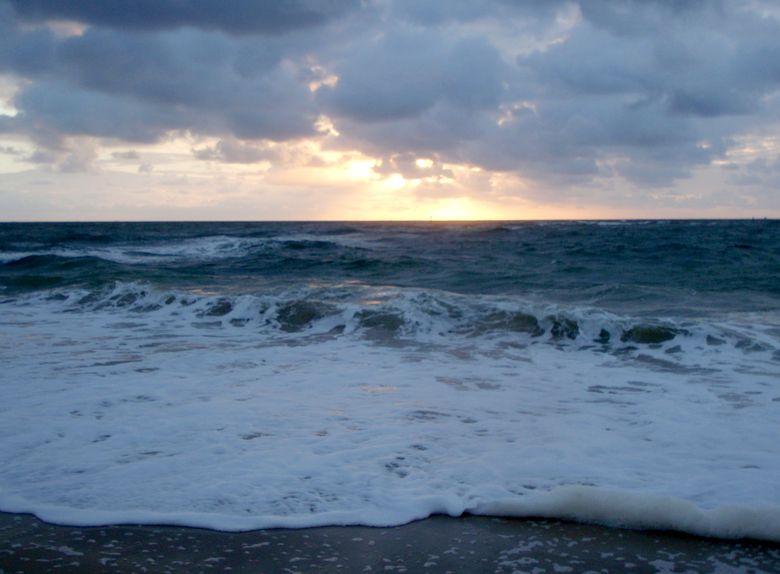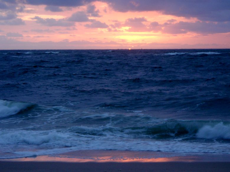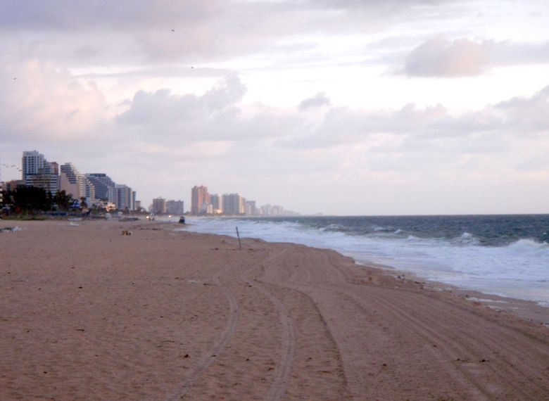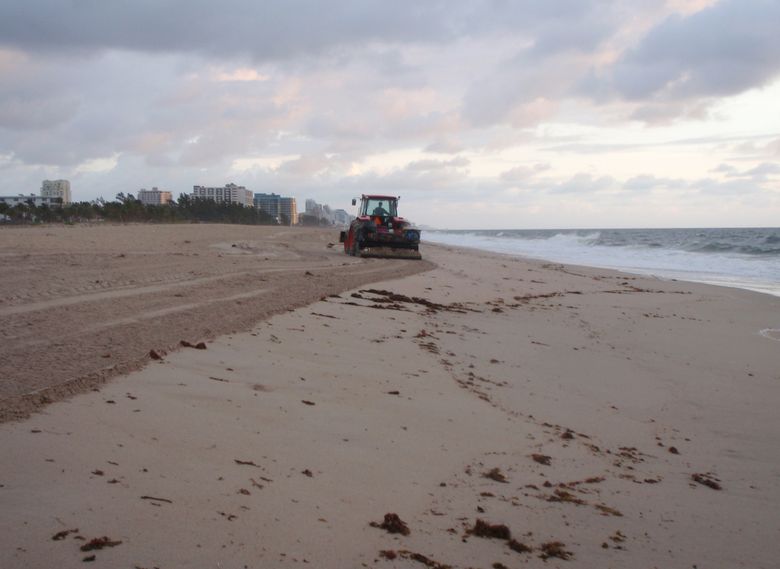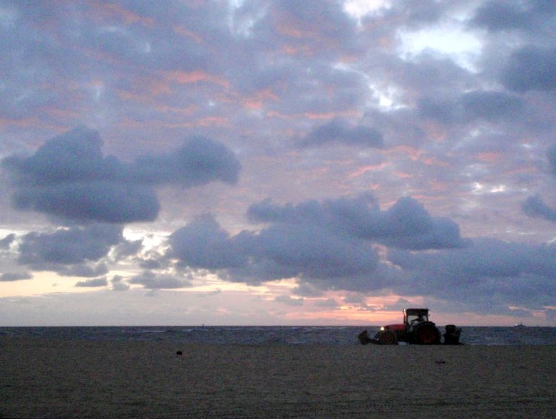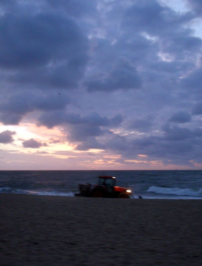 At dawn (around 6 a.m.-ish) the beach cleaner starts raking the beach.