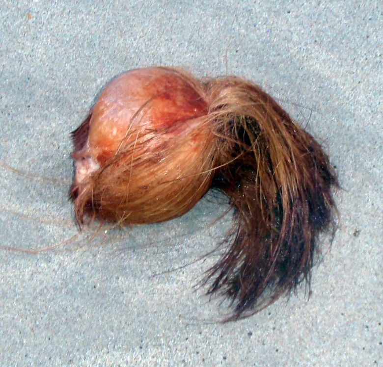 A baby coconut! (Or, more probably, a palm nut…)