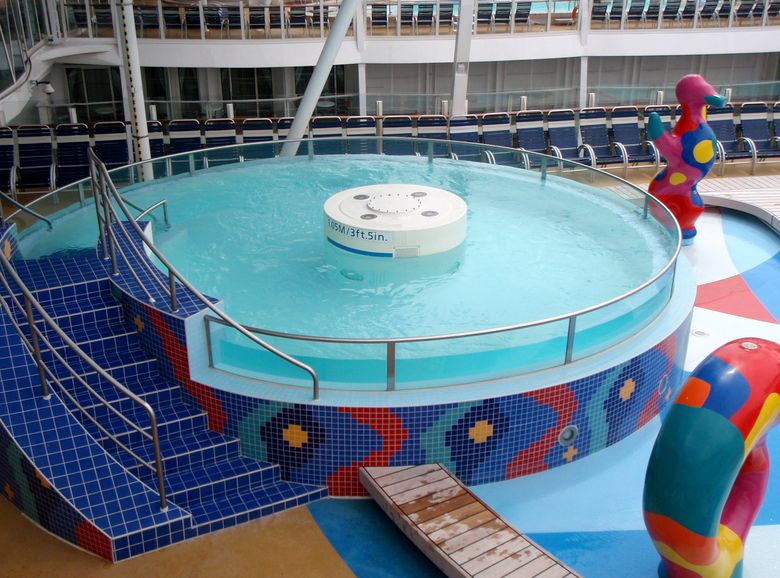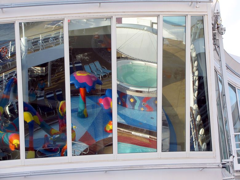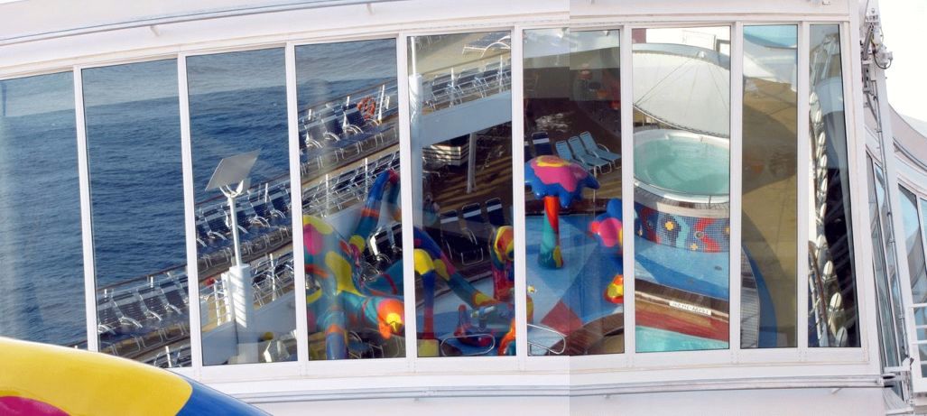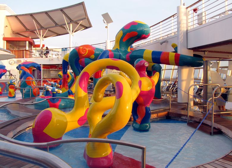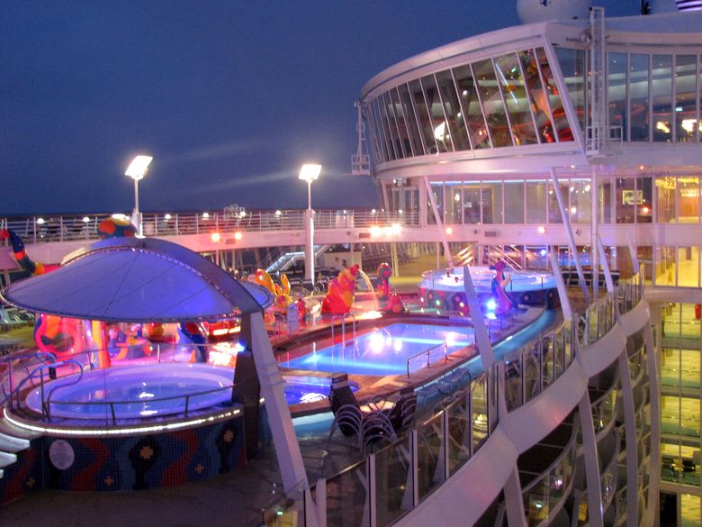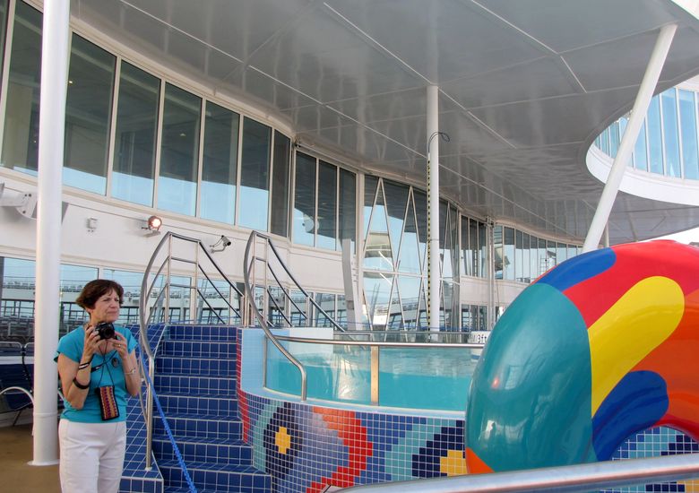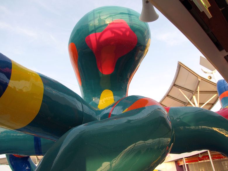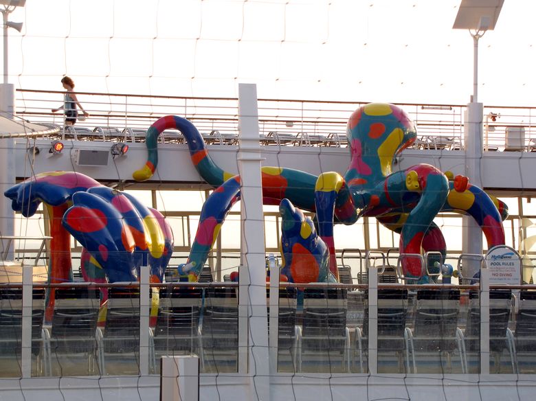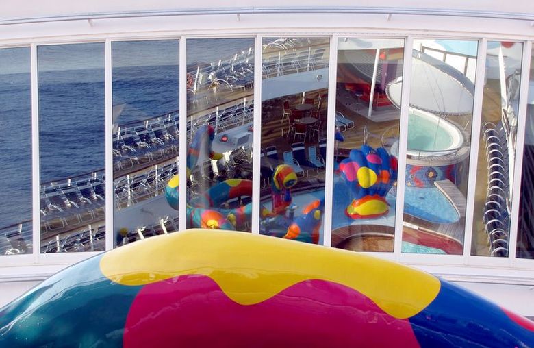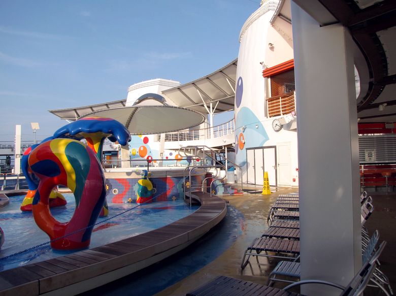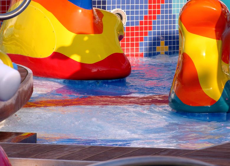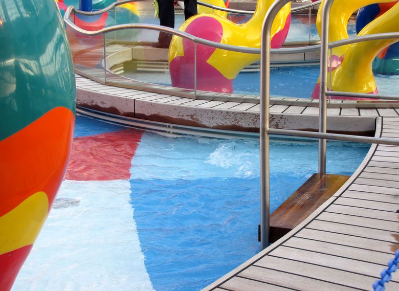 Families looking for fun in the sun will easily spot Royal Caribbean’s signature H2O Zone, marked by a giant octopus with its slides and water-spraying tentacles and surrounded by fellow water-spouting ocean creatures. Separate wading and current pools, as well as a dedicated infant and toddler pool, are set in the interactive aquatic playground and surrounded by adult and child-sized lounge chairs.