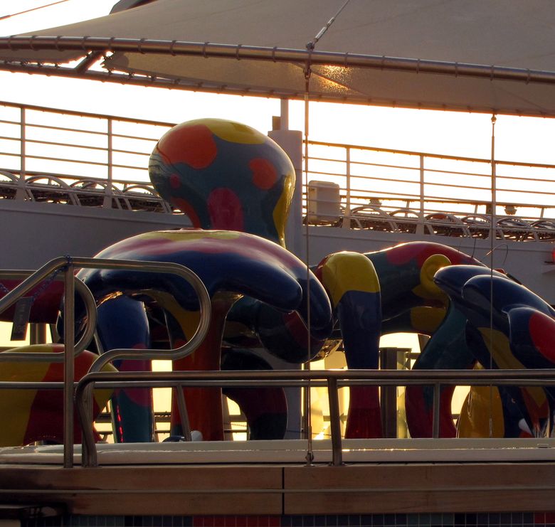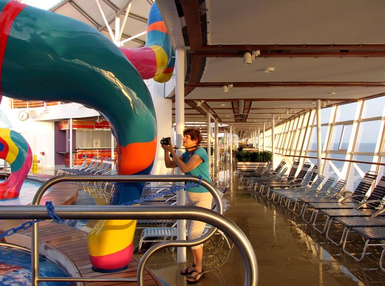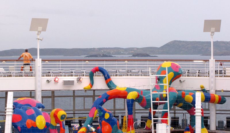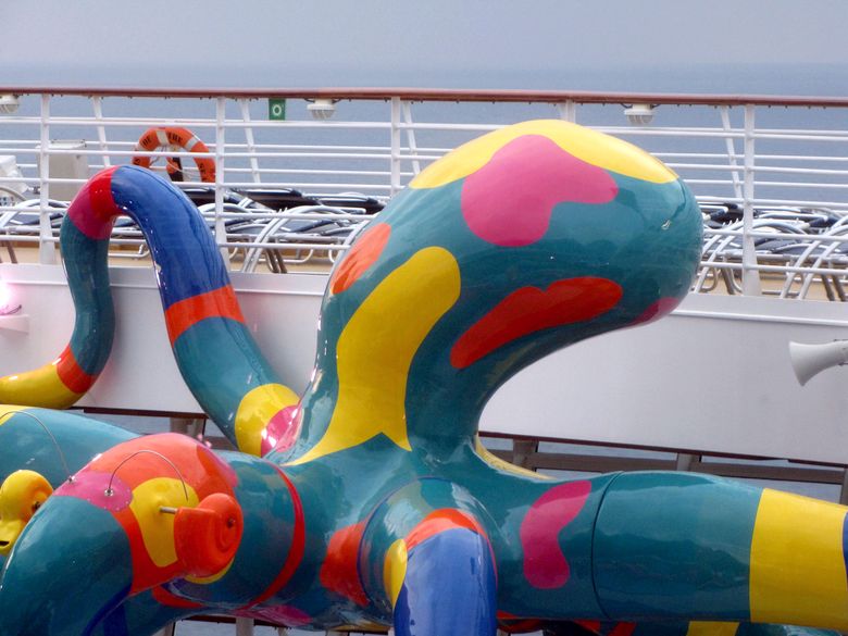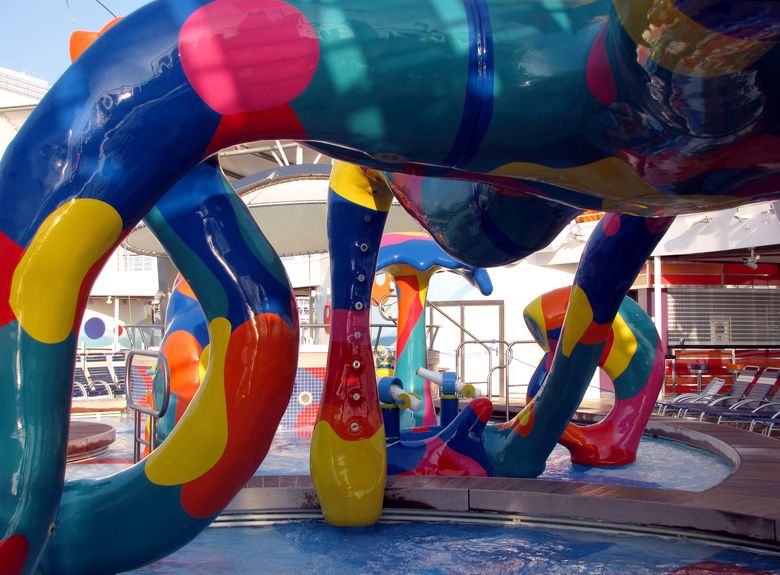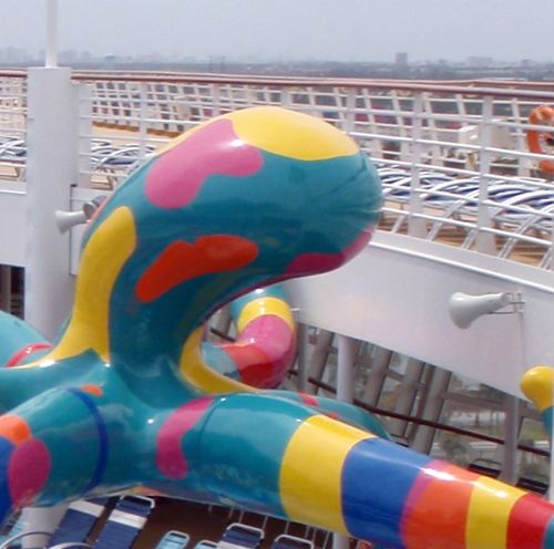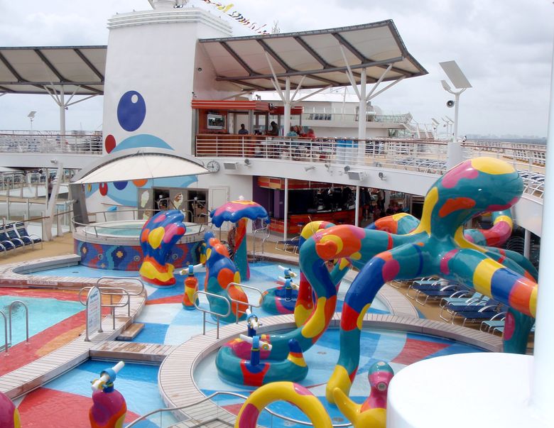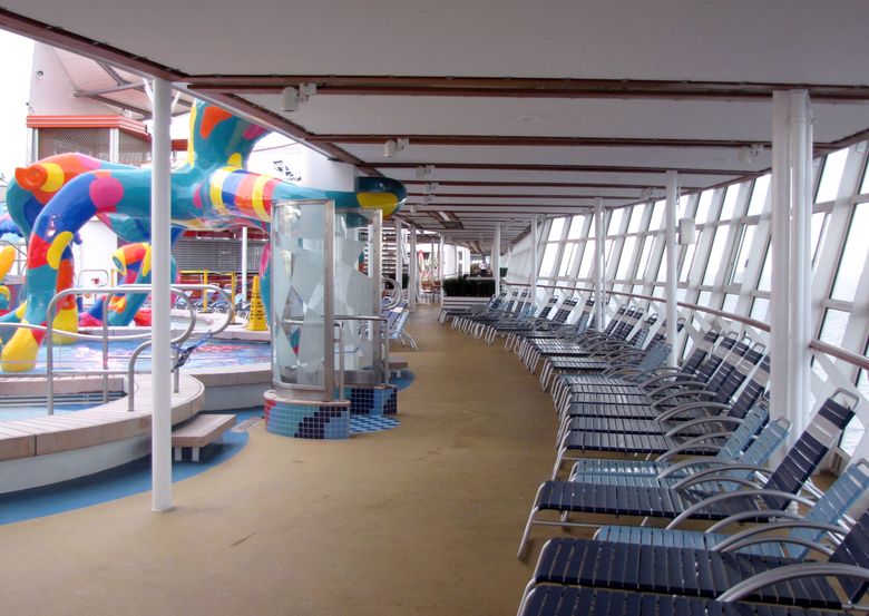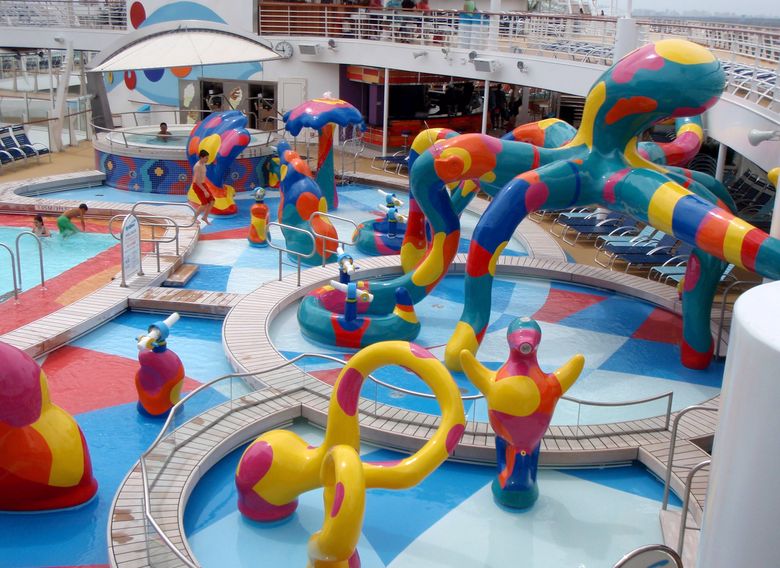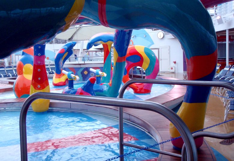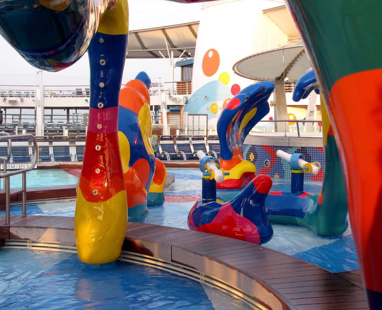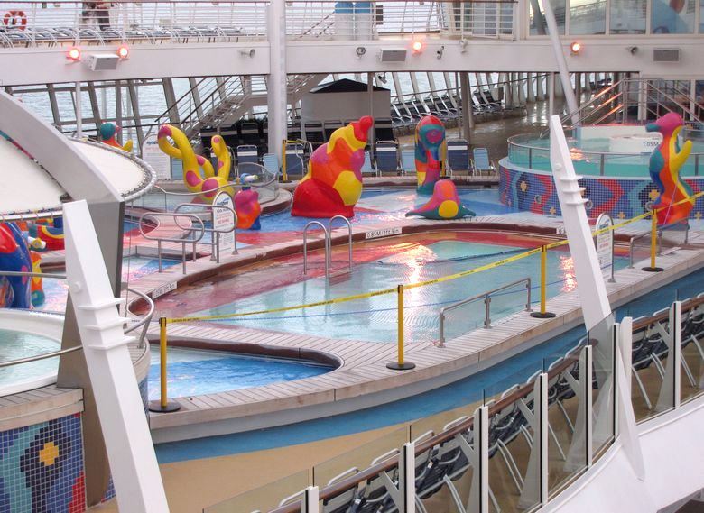 Families looking for fun in the sun will easily spot Royal Caribbean’s signature H2O Zone, marked by a giant octopus with its slides and water-spraying tentacles and surrounded by fellow water-spouting ocean creatures. Separate wading and current pools, as well as a dedicated infant and toddler pool, are set in the interactive aquatic playground and surrounded by adult and child-sized lounge chairs.