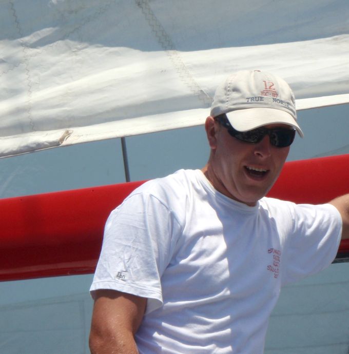 So I was the timer and the bartender! The timer is vital because after the referee boat shows first one flag and then another – you must wait a full six minutes before crossing the start line. (Cause, of course, you’re sailing back and forth before it, waiting to go, not just sitting still!) So I ran the stop watch by the flags, and counted off each 30 seconds till the last, when I yelled each second. If you cross the start line ahead of the six minutes, you have to circle around and RESTART! (And then, forget winning!)