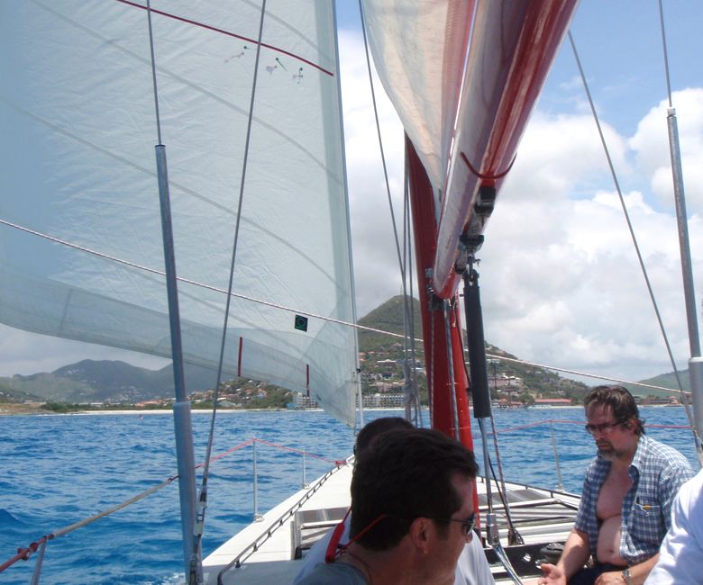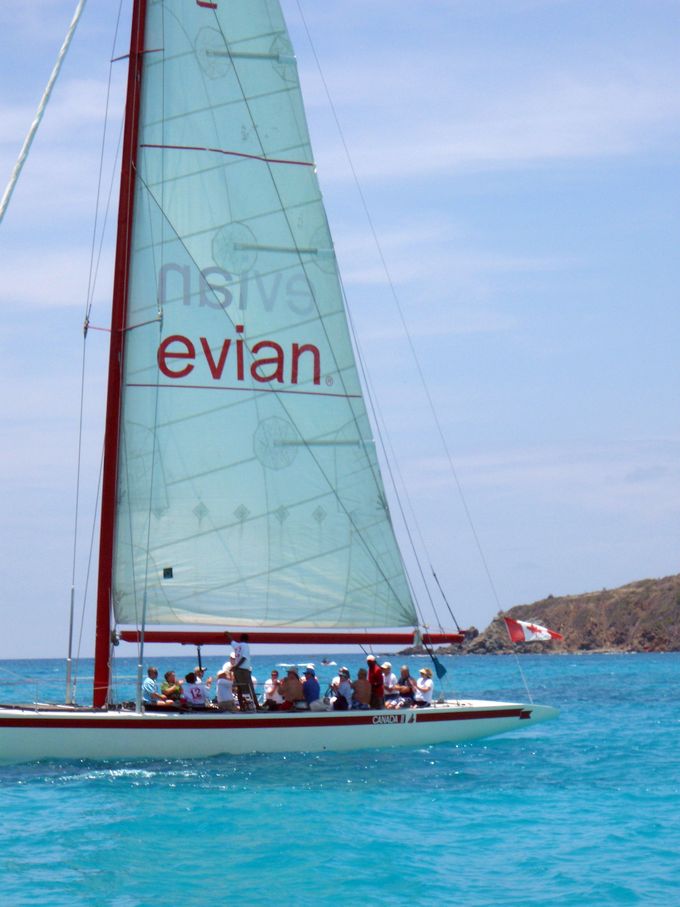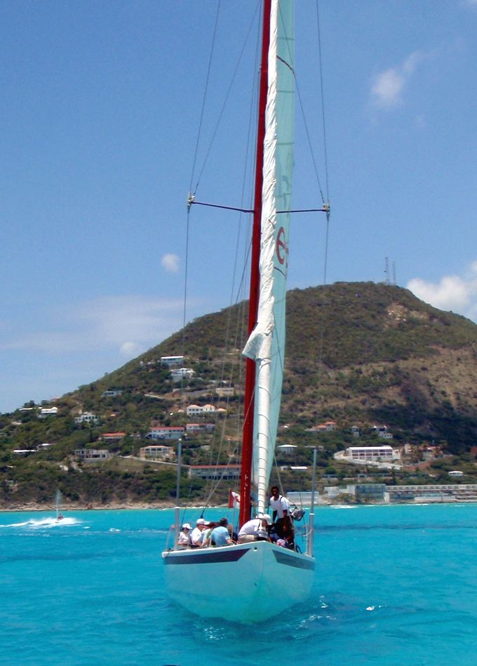 These 70-foot racing yachts such as Canada II, True North, and True North IV leave from Philipsburg in St. Maarten and sail out of Great Bay to the south, where a marked course has been set up. Guests act as crew and are assigned various tasks such as grinding the winches that bring in and let out the line, trimming the sail, and keeping time among other tasks. No sailing experience is necessary. A professional crew provides direction on how to complete these assignments and an experienced captain navigates the craft.
