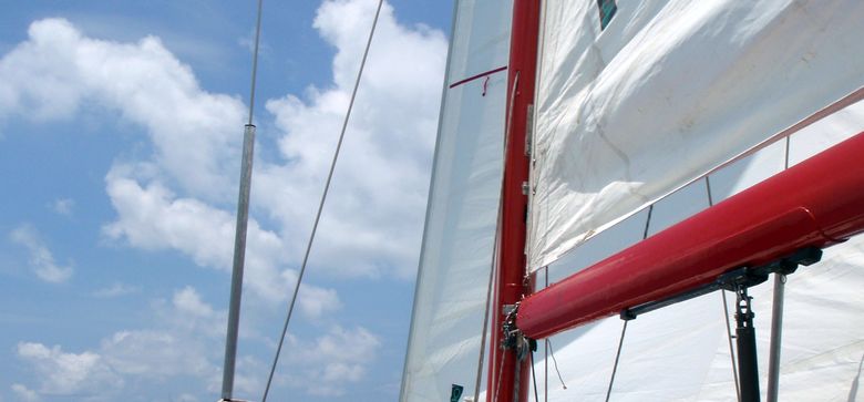 During the race, this guy in a small boat comes racing up behind us as we’re sailing (downwind) and