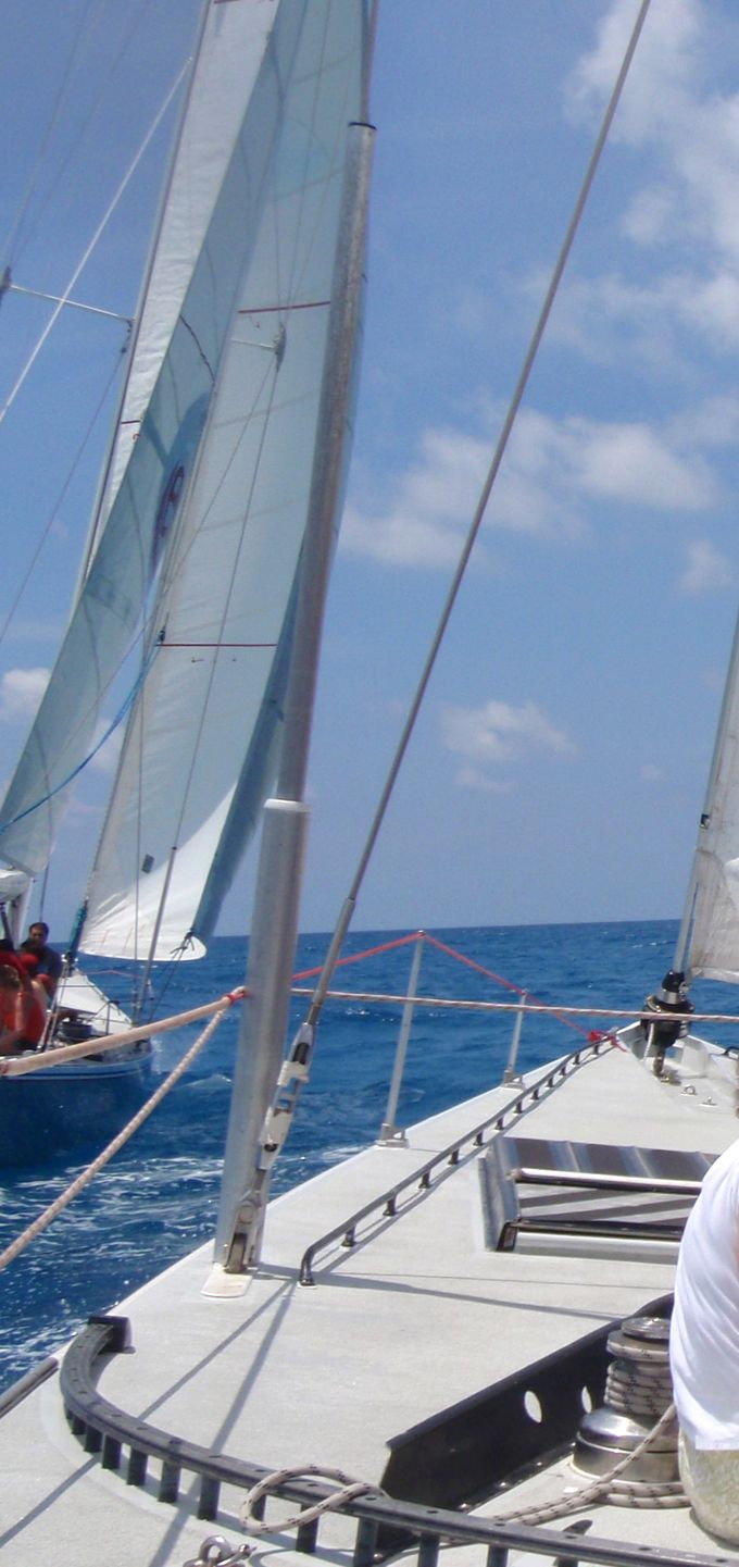 (Oh year, bartender duties entailed reaching down into the cooler and handing out beers, sodas, and water bottles. On the downwind hauls, there wasn’t much work to do for the crew except razzing the other crews and enjoying the sun and sailing!)