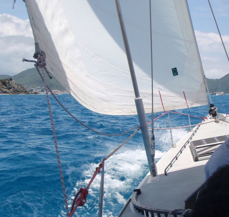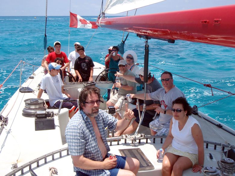 Michael achieved one of his “life goals” – he didn't realize ({eye roll} because he never actually READS my pre-cruise site…) what the deal with was our ‘America’s Cup regatta’ in Sint Maartan. He said (afterward) that back when he worked as a news anchor and voice talent for Ted Turner’s little TV station (before it went national), and Ted was “Captain Outrageous,” Ted used to gather up his staff in the conference room and show them tapes of his America’s Cup team sailing workouts. Michael always thought that looked cooler-than-hell and he’d’ve LOVED to try it, but never thought he’d get a chance to.