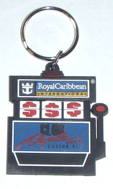 we got free pulls on a ‘gift’ slot machine. We won two of these keychains.